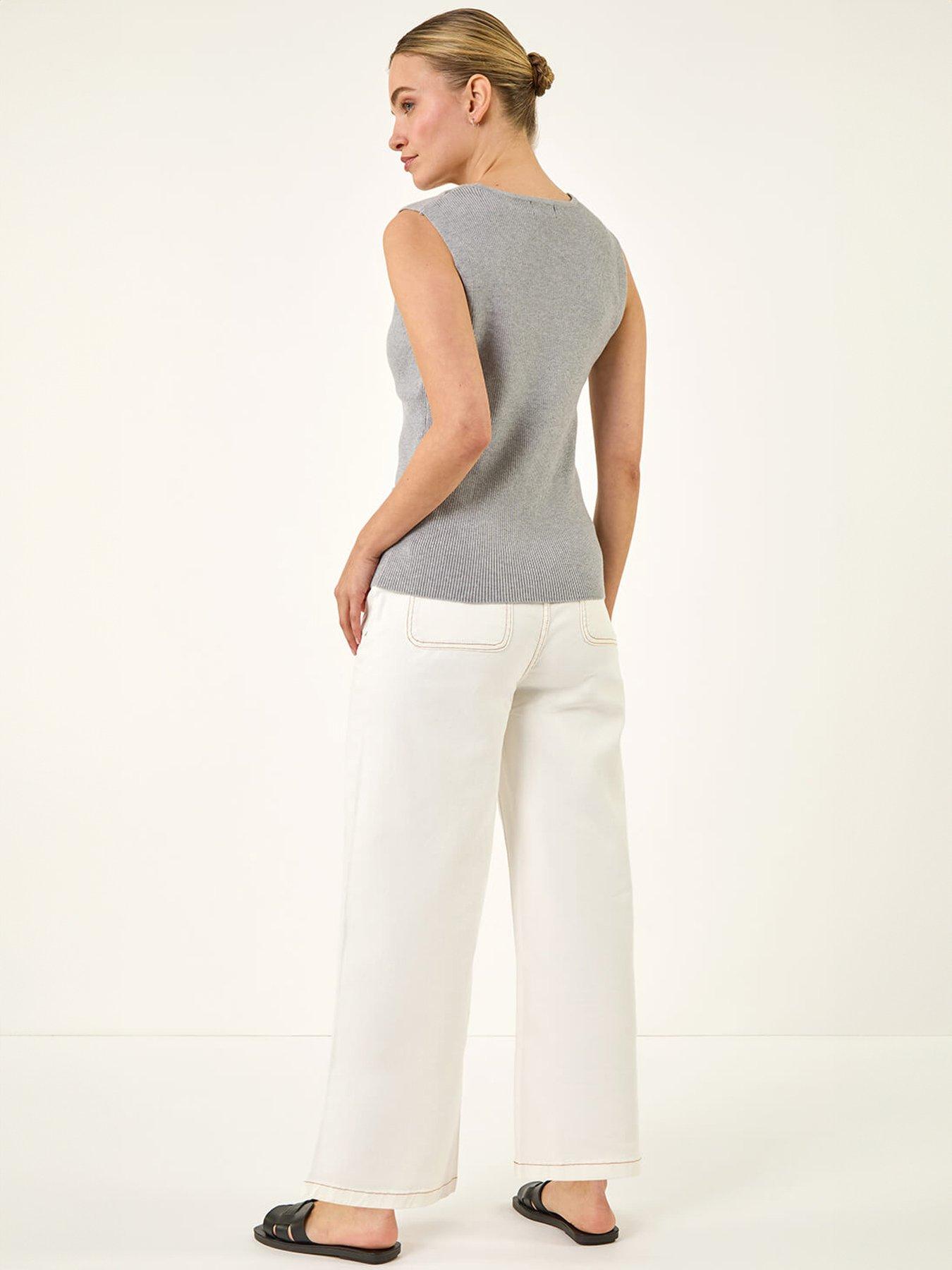 Roman Dusk Buttoned Knit WaistcoatUpgrade your layering game with this stylish knitted waistcoat. The V-neckline and metallic buttons add a touch of sophistication while the soft stretchy fabric ensures all-day comfort. Featuring chic mock pockets and a sleeveless design in elegant grey this waistcoat is effortlessly versatile. Simply style with trousers and sandals for a chic and contemporary look this Spring/Summer.
