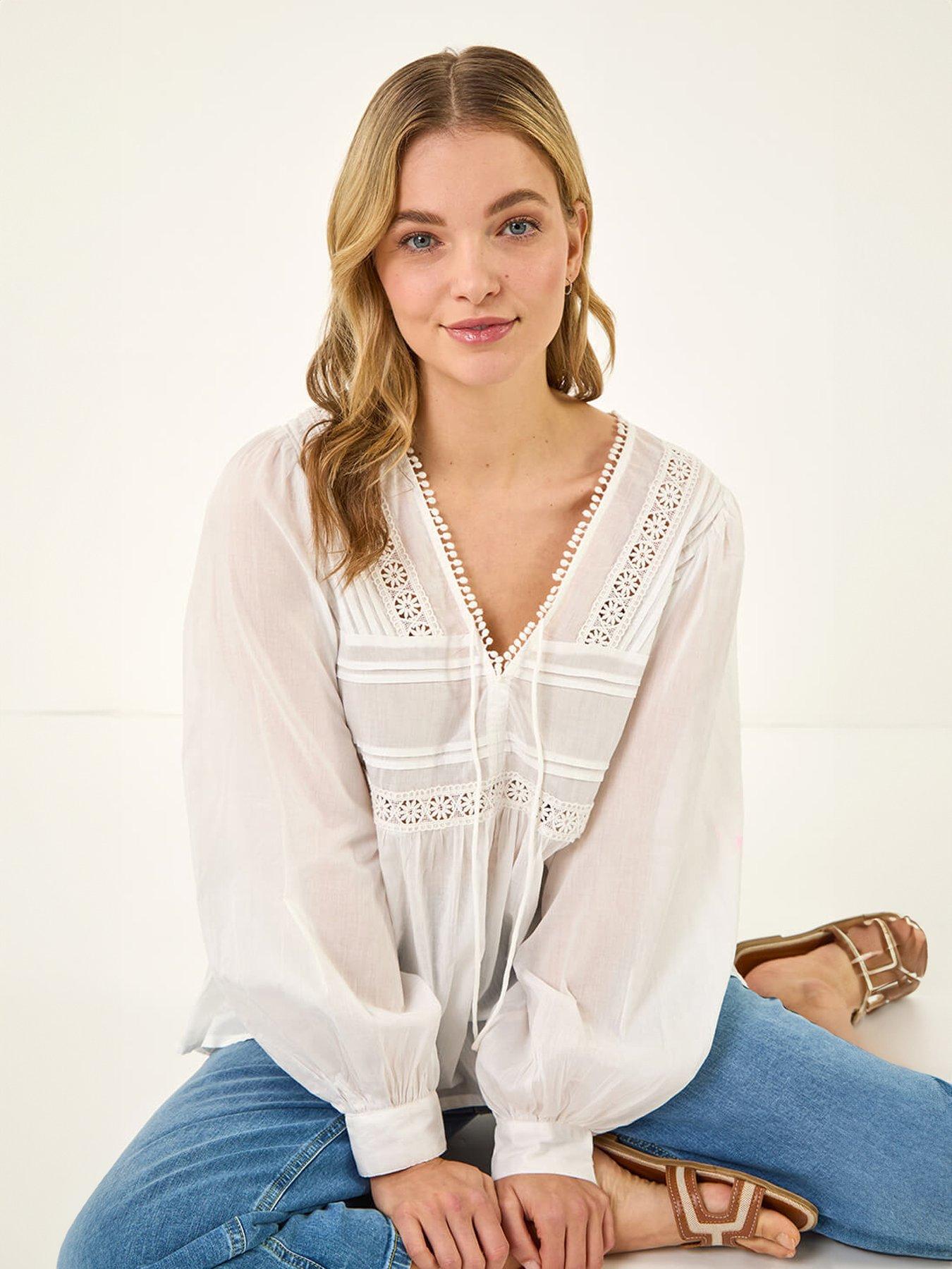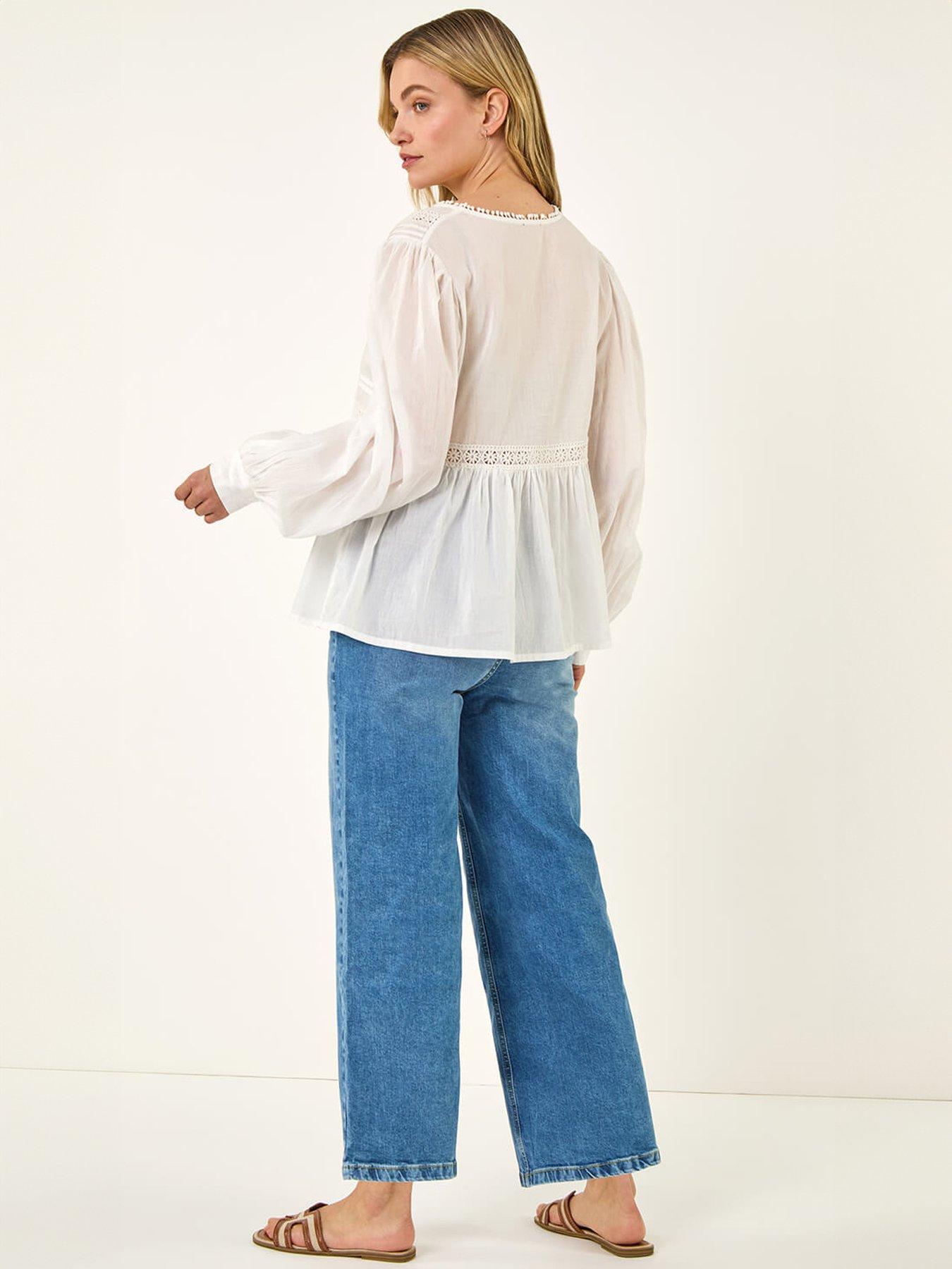 Roman Dusk Cotton Lace Pintuck TopAdd a delicate touch to your Spring Summer wardrobe with this Dusk lace pintuck top. Adorned with intricate ladder trims this top has a soft cotton feel that is perfect for those warmer days. The tie front detail adds a touch of charm. Style effortlessly with a denim jacket and jeggings for a complete and stylish outfit!