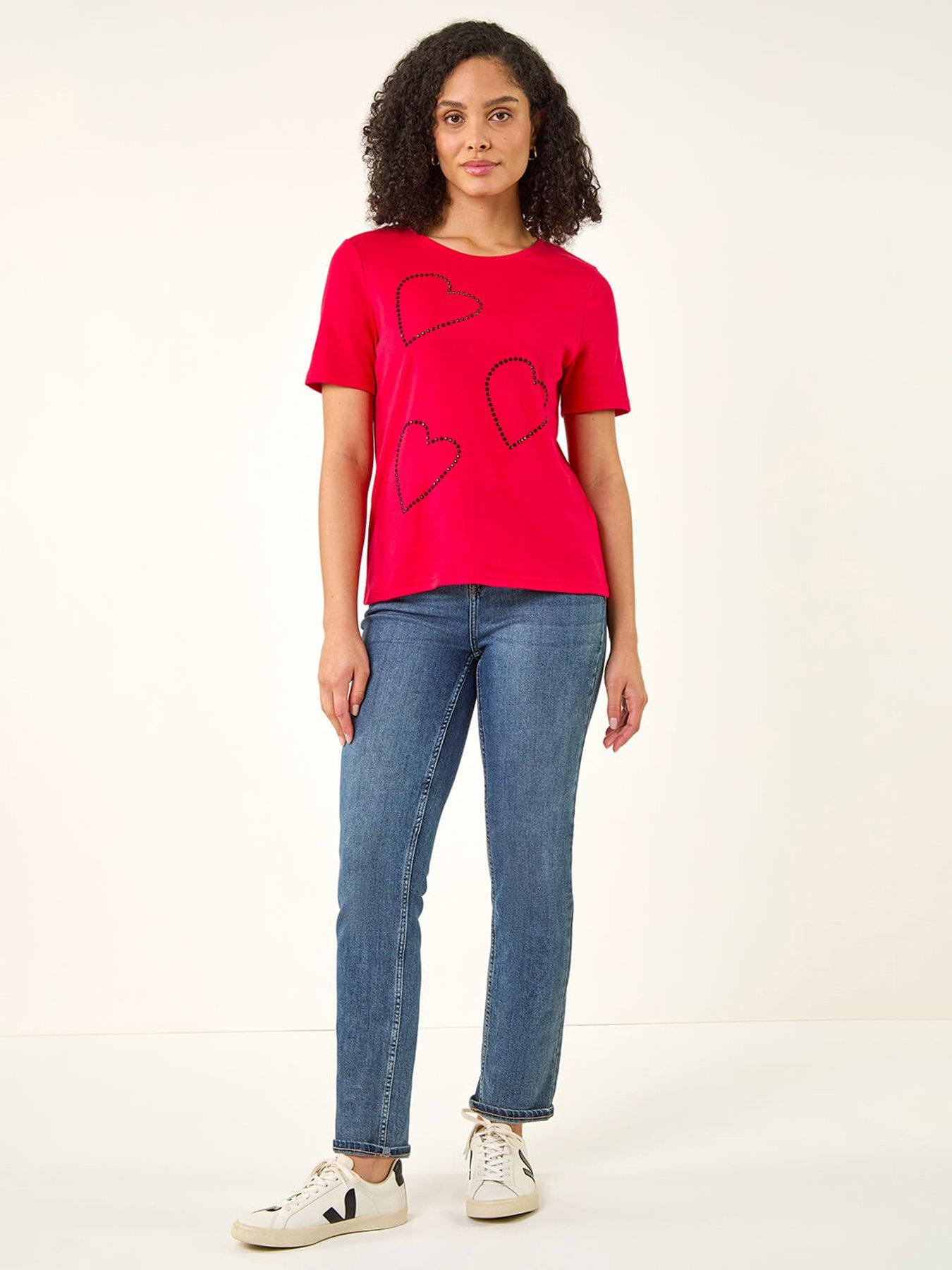 Roman Embellished Heart T-shirtAdd a touch of whimsy to your Spring/Summer wardrobe with this adorable heart-textured t-shirt. Featuring a charming textured heart detail this top is designed with a classic round neckline and flattering short sleeves. With a hip-length finish it's perfect for casual outings. Pair with your favourite jeans and comfy sandals for a laid-back and stylish look.
