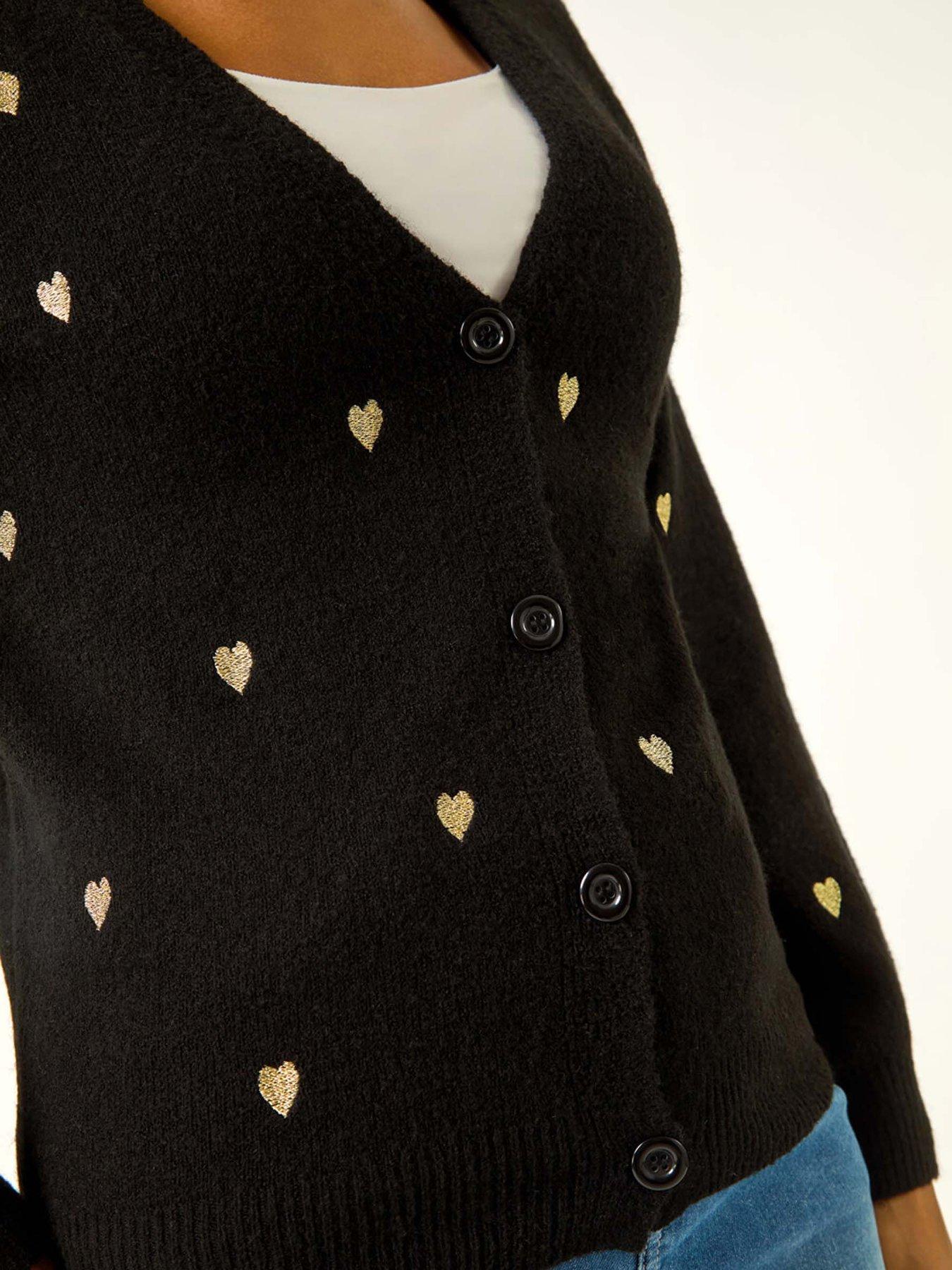 Roman Embroidered Heart Knit Cardigan - BlackWrap yourself in love with this charming embroidered knit cardigan. Featuring a feminine v-neckline with front buttons and cosy long sleeves this soft knitted piece is adorned with delicate heart embroidery and subtle metallic detailing. Designed in a classic cardigan shape this beautiful knit will add a touch of romance to your Autumn Winter wardrobe. Simply layer over your favourite shirt and jeggings finishing the look with stylish ankle boots for a chic outfit!
