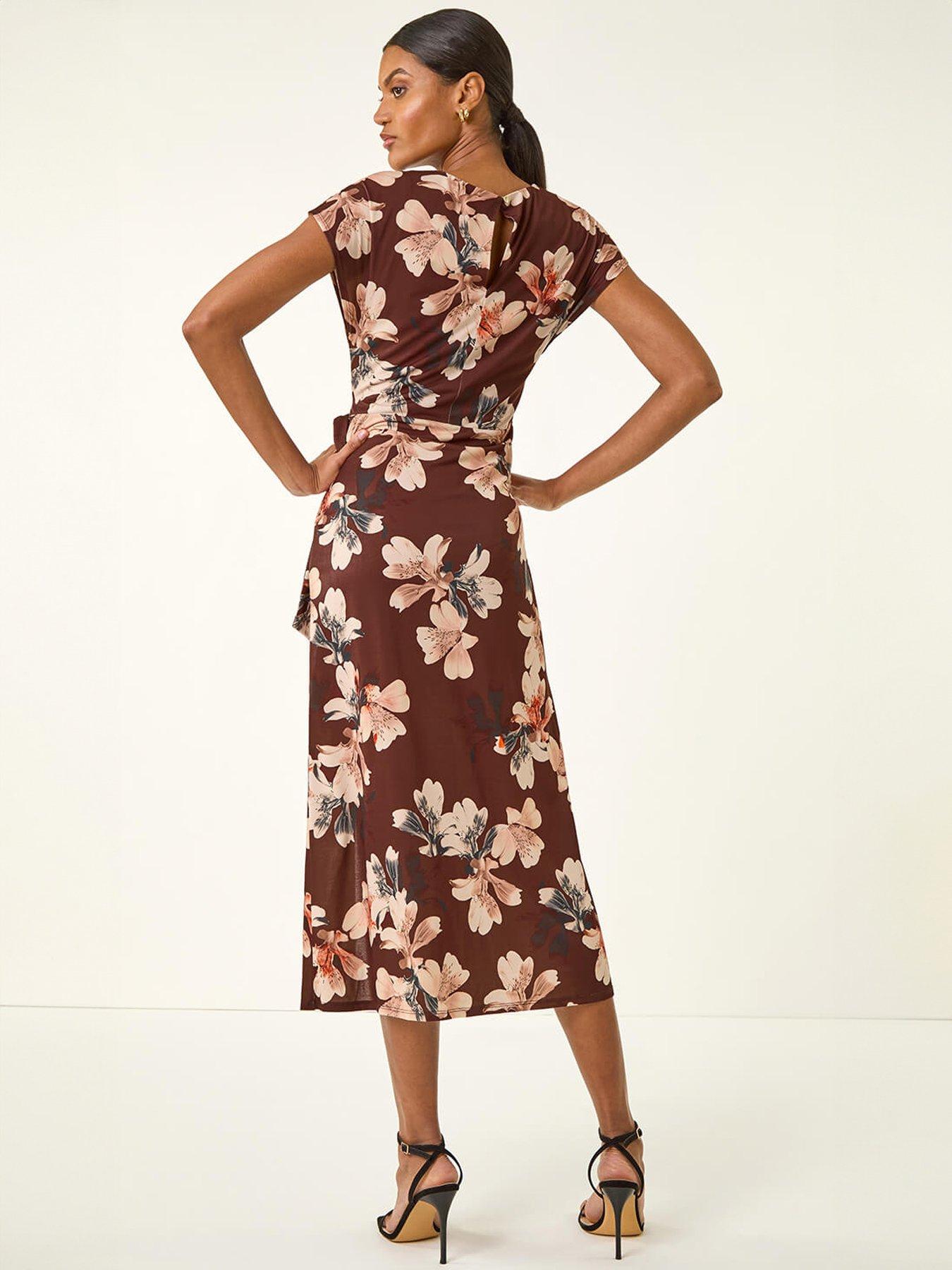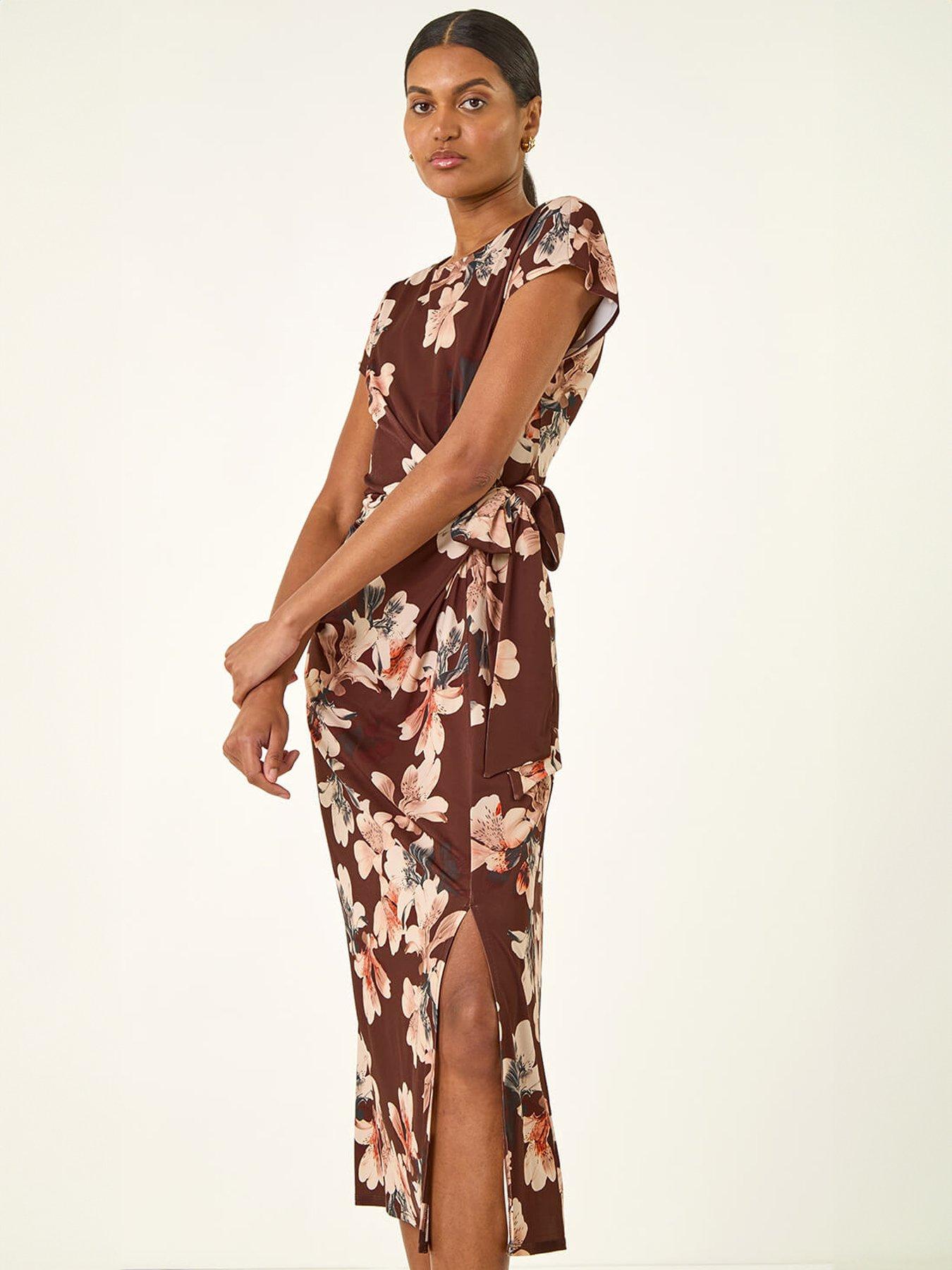 Roman Floral Twist Stretch DressAdd a touch of floral charm to your Autumn/Winter wardrobe with this printed twist dress. Crafted from a soft touch ITY stretch fabric this dress features an eye catching floral print and a flattering twist detail at the waist. The short sleeves and classic round neck create a versatile piece that can easily be dressed up with heels and a blazer for a chic and sophisticated look.