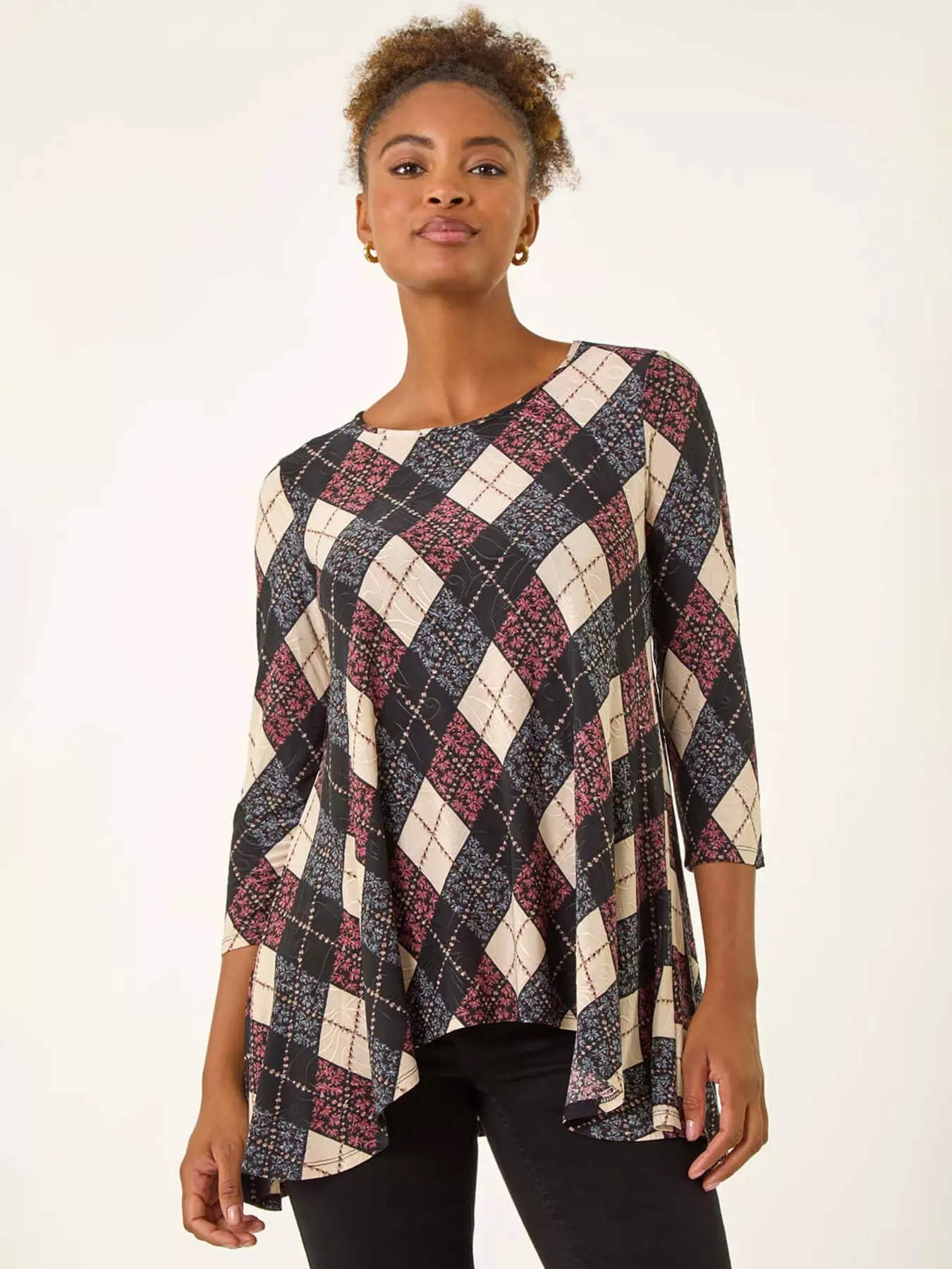 Turn heads this Autumn in this beautiful jacquard tunic. Crafted from stretch jersey fabric this tunic features a classic round neck and elegant 3/4 sleeves. The all-over floral jacquard adds a touch of sophistication while the hanky hem detail gives a playful twist to this versatile piece. Pair with jeggings and ankle boots for a stylish and comfortable outfit perfect for any occasion!- Material Content: 93% Polyester 7% Elastane