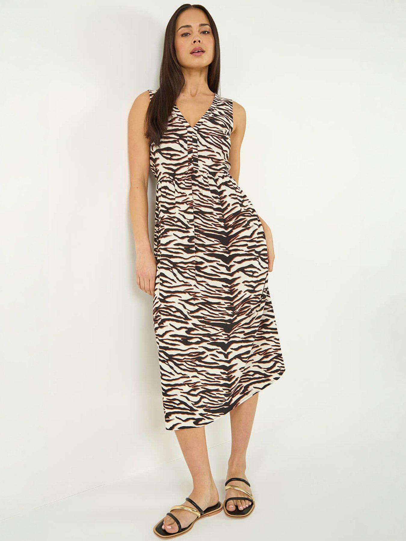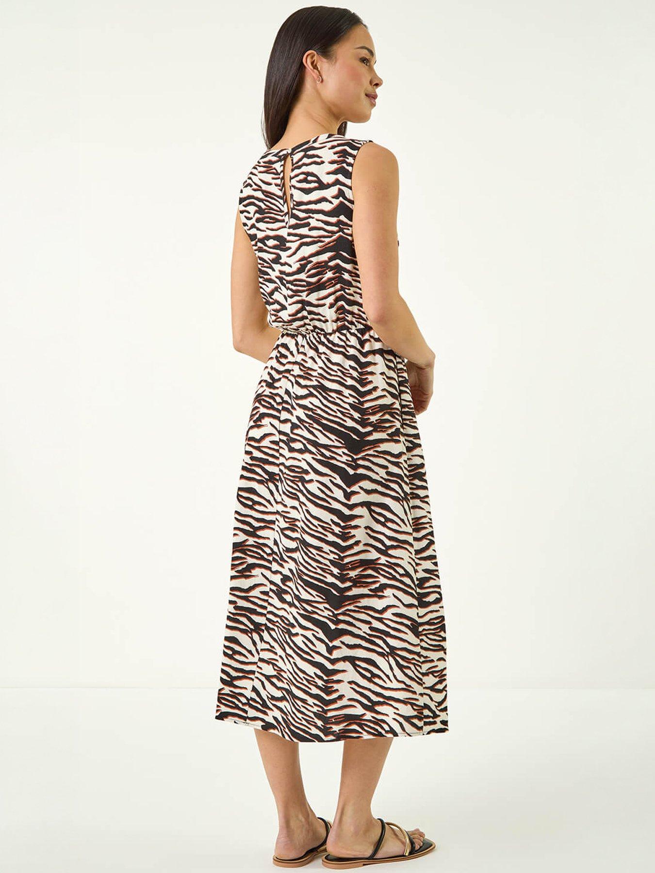 Roman Petite Abstract Print Midi DressGet ready to make a statement in this chic Petite animal print dress. With a stylish v-neckline this midi dress is perfect for a casual day out. Crafted from a comfortable woven fabric with a striking wild print. For the ultimate Spring Summer look pair it with a denim jacket and wedged heels!