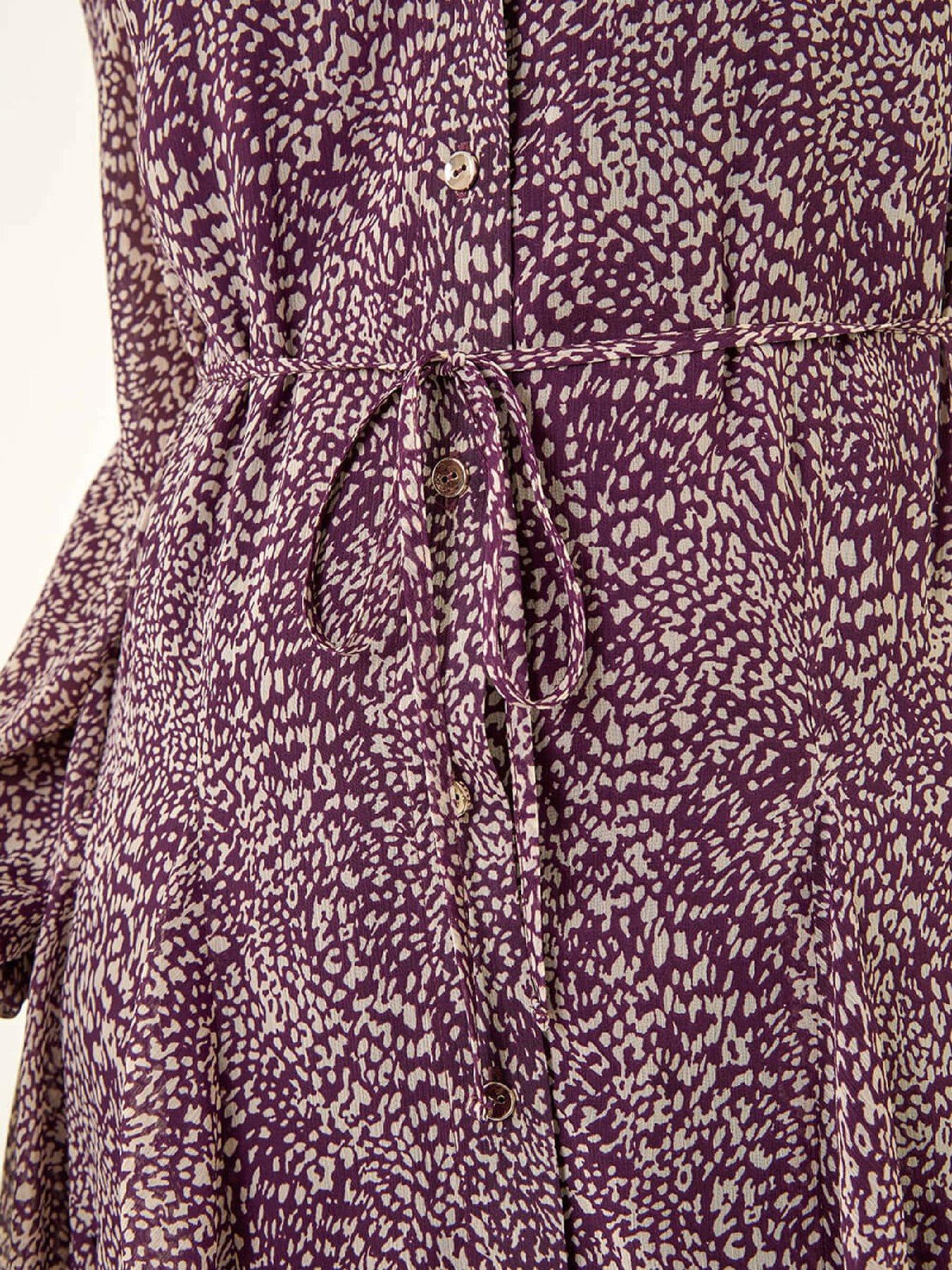 Roman Petite Abstract Spot Godet Dress - PlumEmbrace the chill in style with this chic Petite abstract spot printed dress. The trendy round neckline with a collar style and long sleeves ensures you stay warm and fashionable. Made from a comfy woven fabric and featuring a tie waist detail this dress offers a flattering fit. Style it with a denim jacket and knee high boots for a stunning fall look!