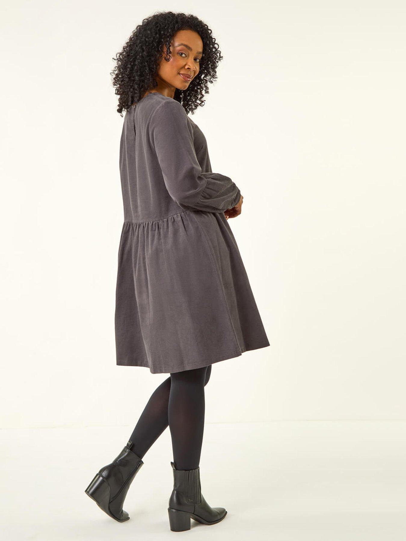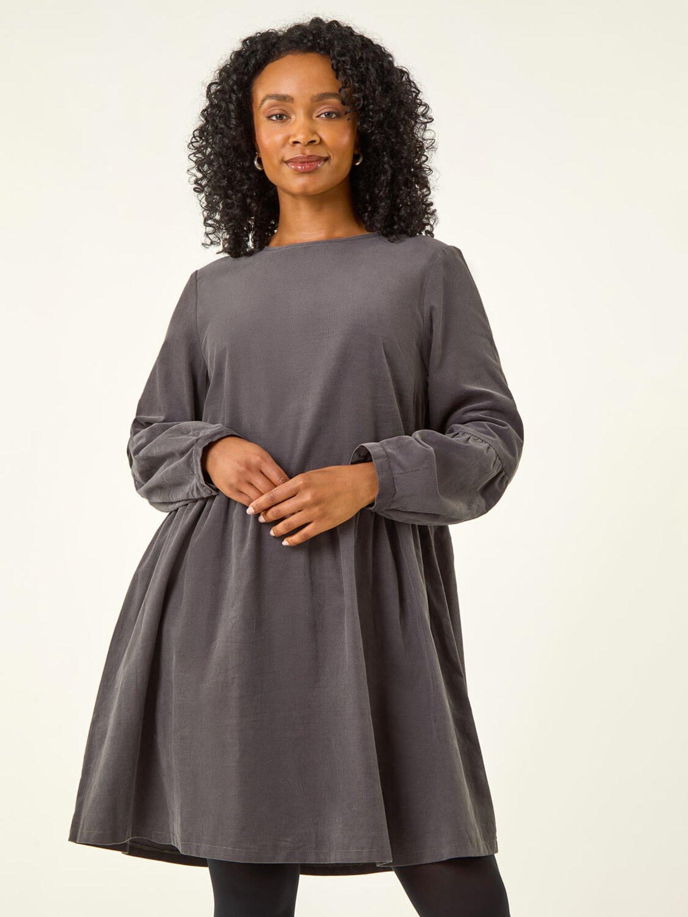 Roman Petite Cotton Mini Dress - GreyI'm glad to present a versatile option for your Autumn and Winter wardrobe with this classic Petite corduroy dress. Crafted from a soft cotton corduroy fabric this dress features a timeless round neckline and long sleeves making it an essential piece. Designed in a knee length with a flattering fit it will keep you stylish and comfortable throughout the season. Pair it with tights and ankle boots for a trendy outfit!