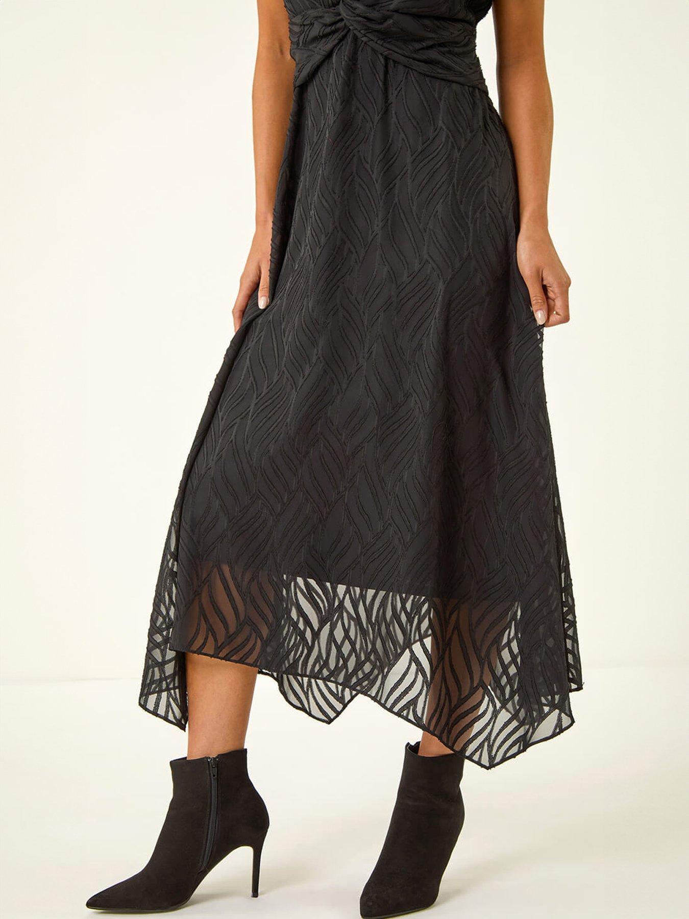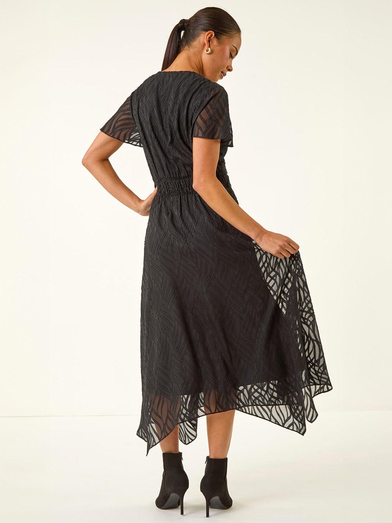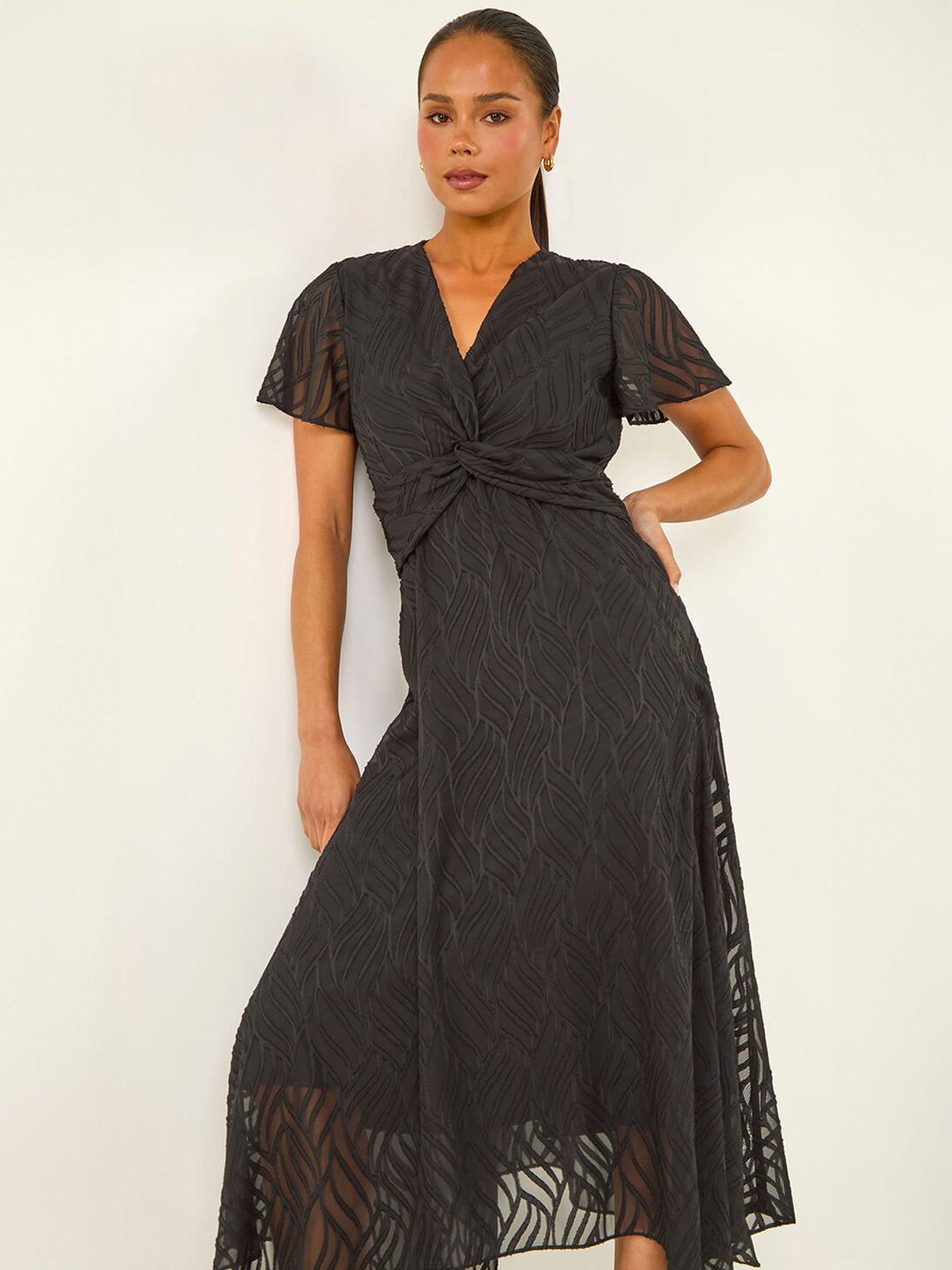 Roman Petite Front Twist Jacquard DressMake a stylish statement this season in this chic twist front dress. Crafted from a comfortable jacquard fabric this midi-length dress features a flattering v-neckline and short sleeves. The twist detail at the front adds interest and ensures a perfect fit. Ideal for evenings out simply style with heels and a blazer for a sophisticated look.
