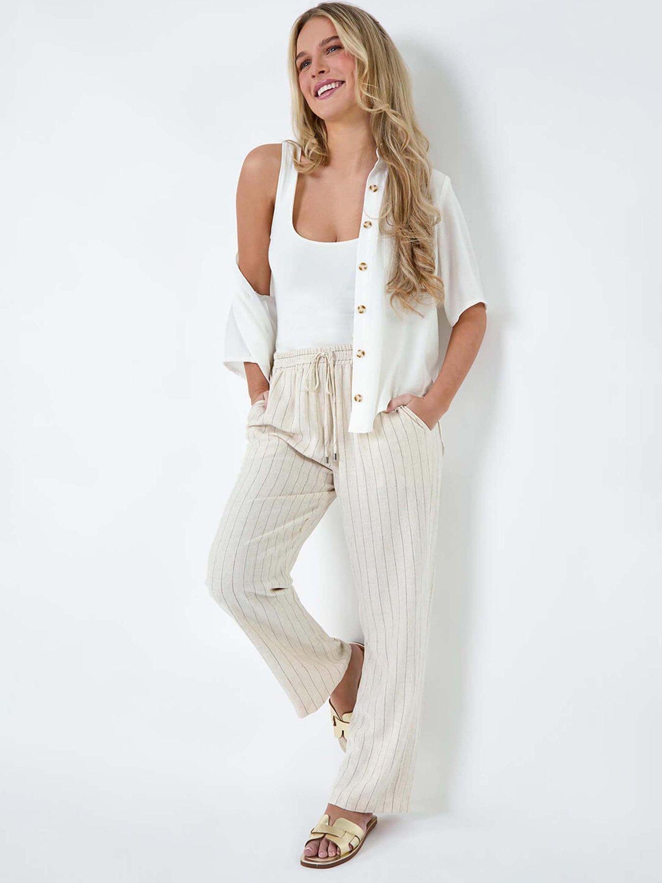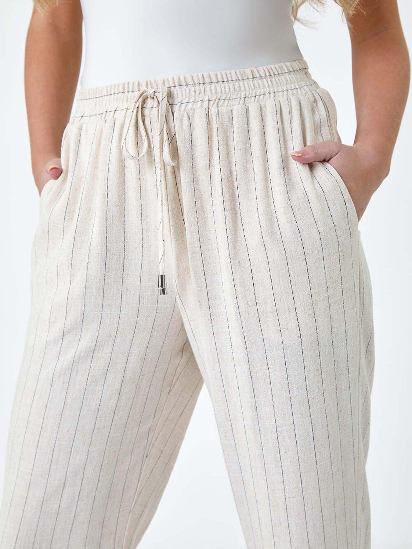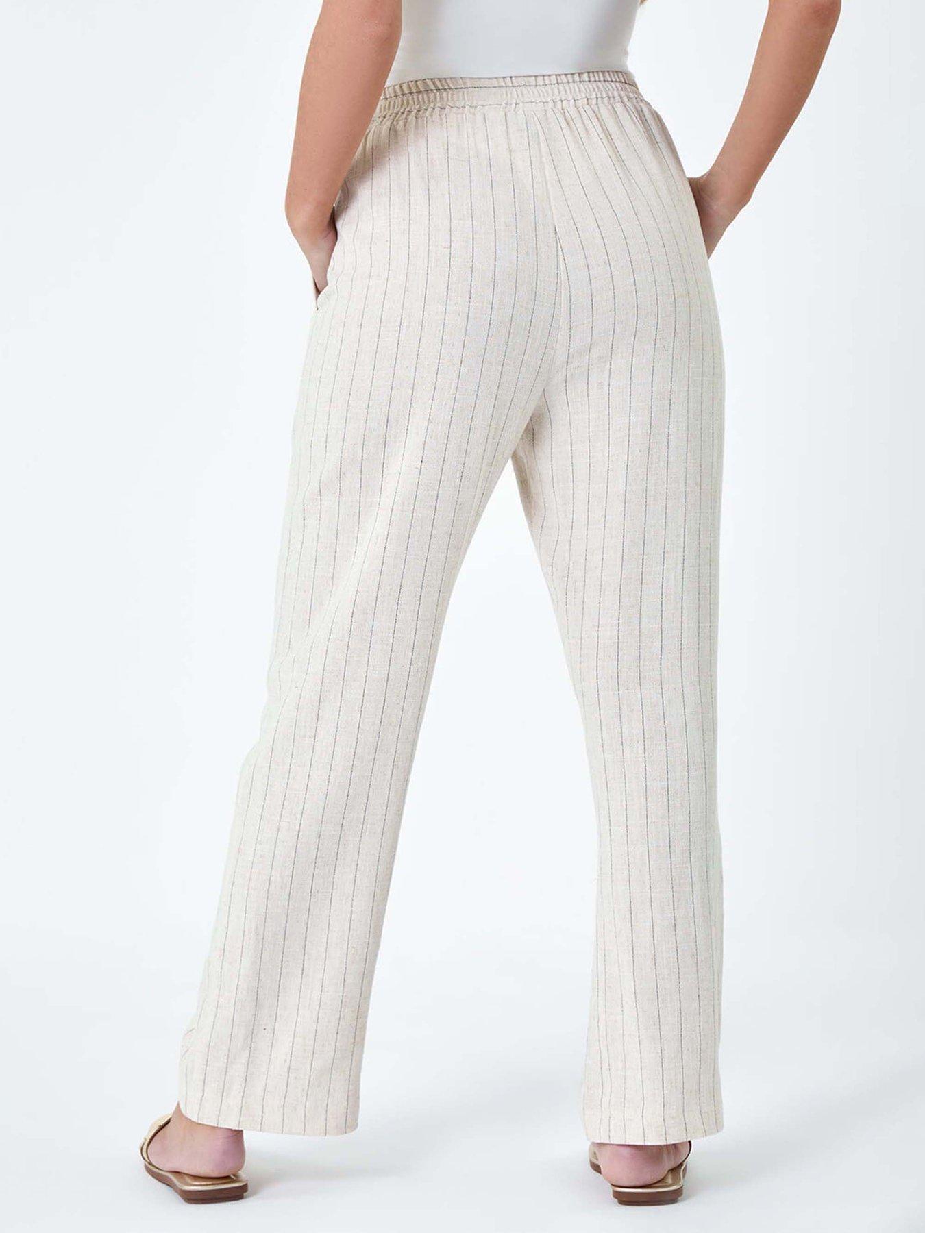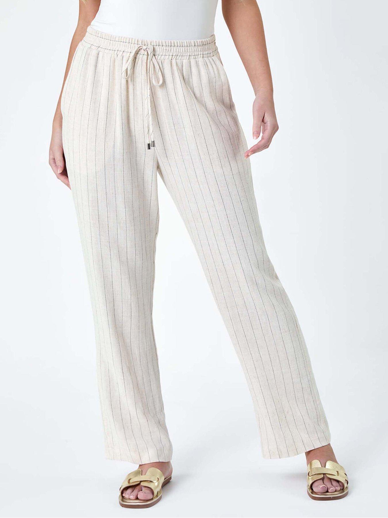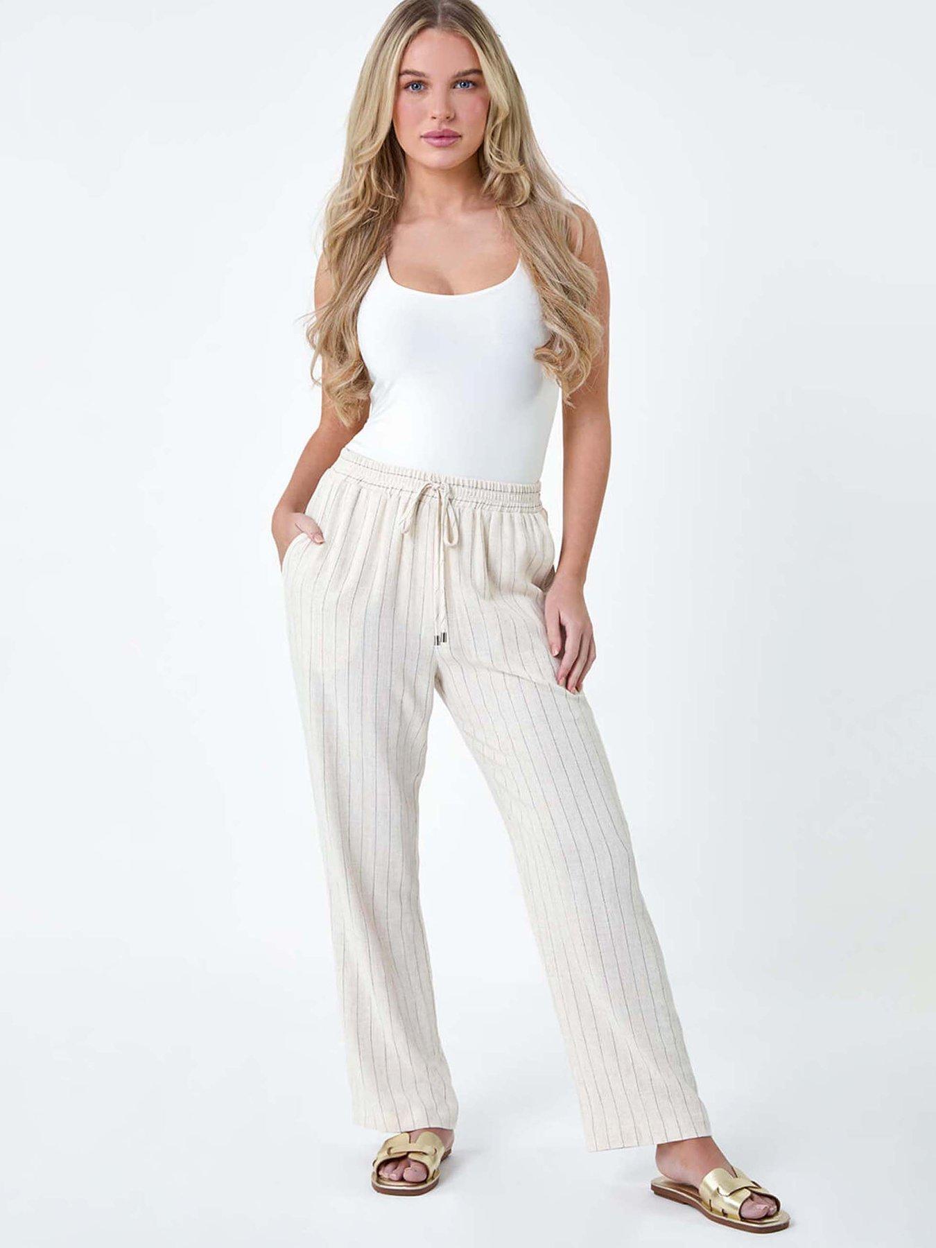Roman Petite Linen Blend Stripe TrousersBringing you style and comfort in one, these Petite woven trousers can take you from relaxing at home to an effortlessly stylish day look. Cut from a lightweight linen blend material with a drawstring to the elasticated waist, these pants are perfect for keeping you cool in Summer. They feature handy side pockets as well as a timeless stripe print to elongate your legs. Pair yours with a plain cami top and sandals for breezy beach holidays or reach for a denim jacket and trainers to travel in style!