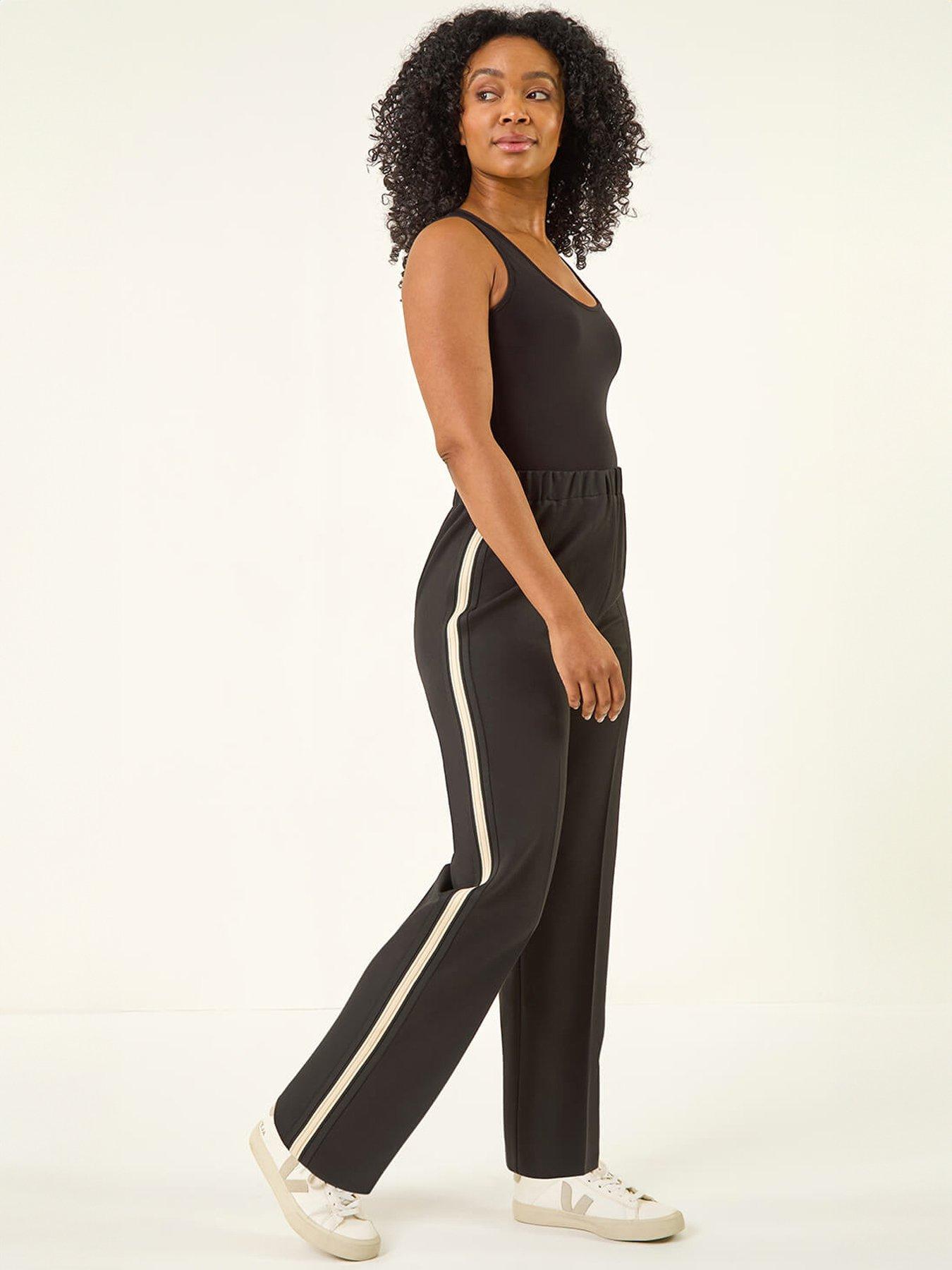 Roman Petite Side Stripe TrouserGet ready to elevate your casual wardrobe this Autumn/Winter with these side stripe trousers. Crafted in a comfortable pull-on style these full-length trousers feature an elasticated waist for an easy fit. The chic side stripe detail running down the side seams adds a sporty edge to your look. Pair them effortlessly with cosy knitwear and trendy trainers for a relaxed yet stylish outfit.