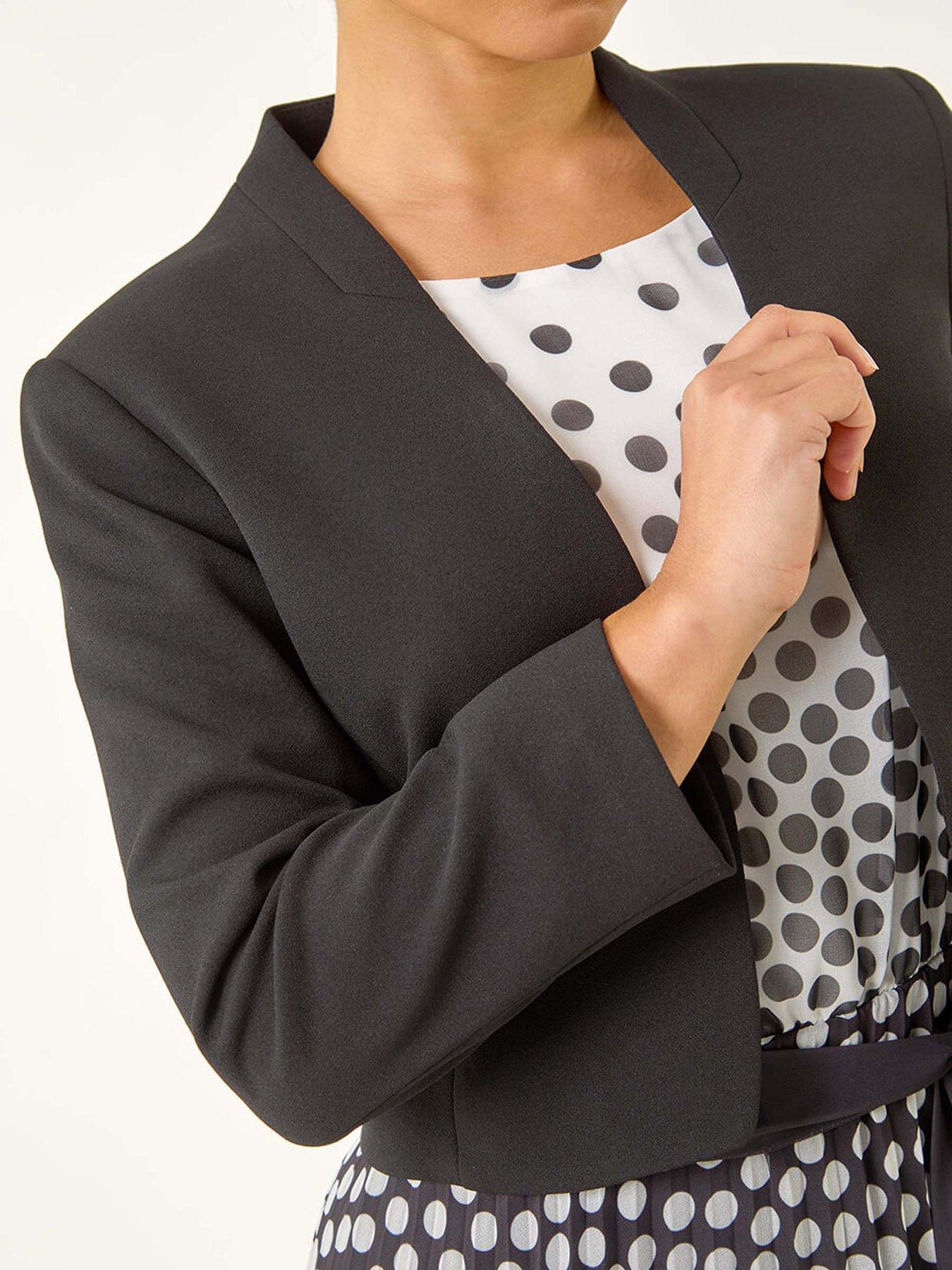 Roman Petite Stretch Bolero Jacket - BlackComplete your Spring/Summer look with this chic bolero jacket. Designed in an edge to edge style with no fastening this jacket features long set in sleeves and is cut from a comfortable stretch fabric for a flattering fit. Finished at the hips it's the perfect layering piece for those warmer days. Simply pull on over a floral dress and heels for a polished and elegant ensemble.