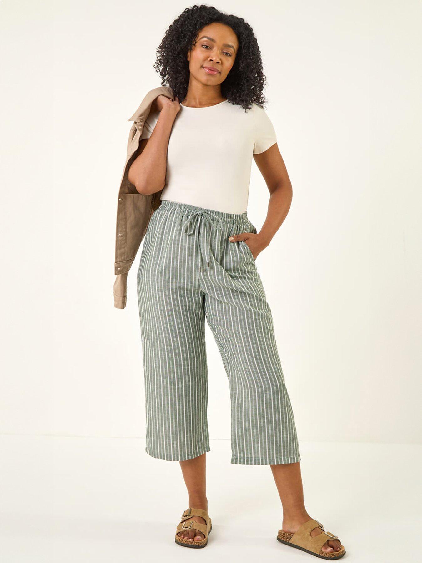 Roman Petite Stripe Cropped Wide Leg TrouserAdd a touch of sophistication to your wardrobe with these stylish Petite stripe trousers. Featuring a flattering wide leg shape and a cropped length these trousers are perfect for the warmer months. The elasticated tie waist detail ensures a comfortable fit while the unique stripe print adds a fun touch to your outfit. Pair with a blouse and jacket for a look that will turn heads wherever you go!