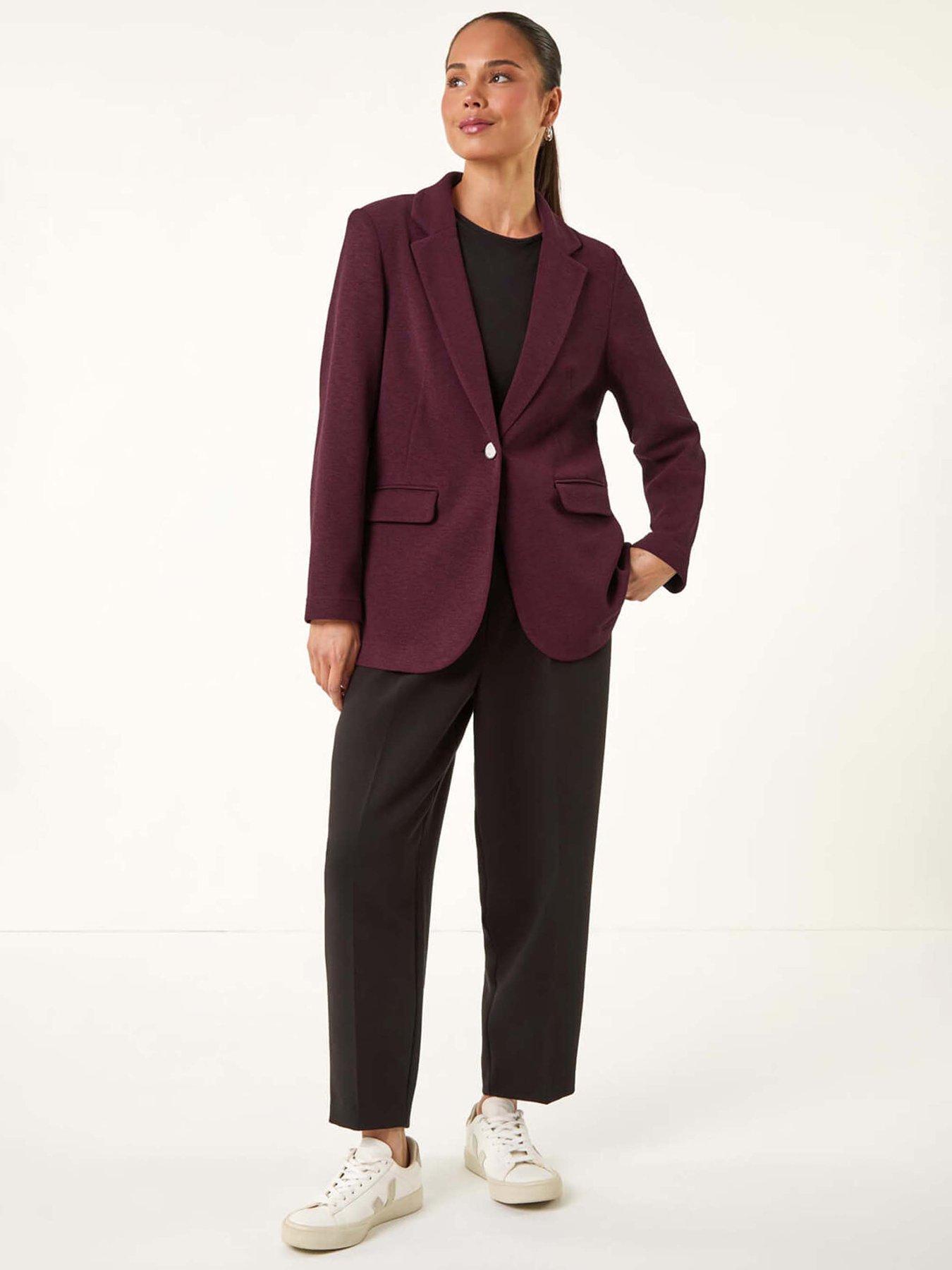 Roman Petite Textured Buttoned Blazer - PlumElevate your wardrobe with this textured button up beauty that will effortlessly take you from day to night. Designed with a sophisticated revere collar and convenient pocket detail on the front adding a touch of style and functionality. Featuring long set in sleeves and finishing at the hips this elegant piece is a pull-on style with button fastening on the front. Unlined for a comfortable fit pair it with a smart shirt skirt tights and heels for a chic and polished look.