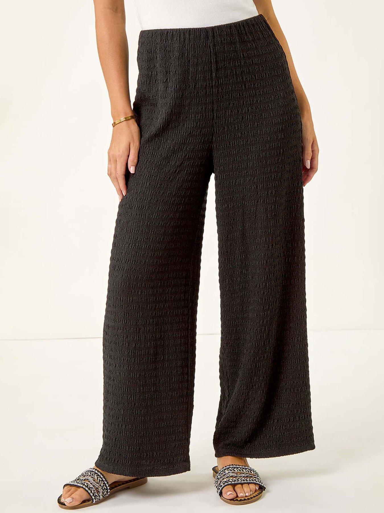 Roman Petite Textured Stretch Trouser - BlackThese trousers are made from textured fabric and feature a full length design with a comfortable elasticated waistband for a perfect fit. The pull on style offers ease and convenience while the stretch fabric ensures flexibility and comfort throughout the day. Style them with a cami top and sandals for a relaxed yet chic look perfect for casual outings.