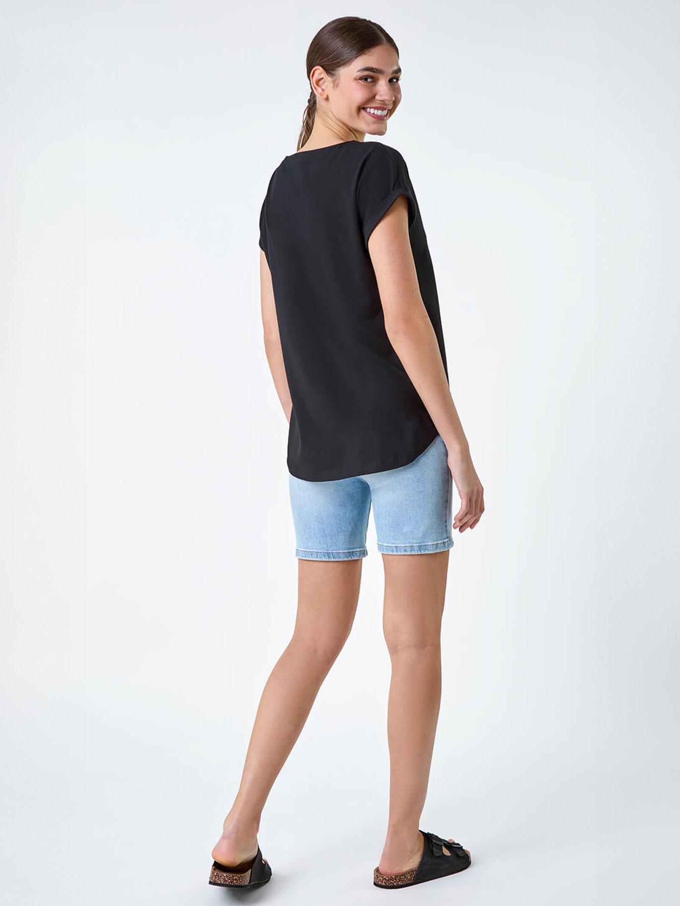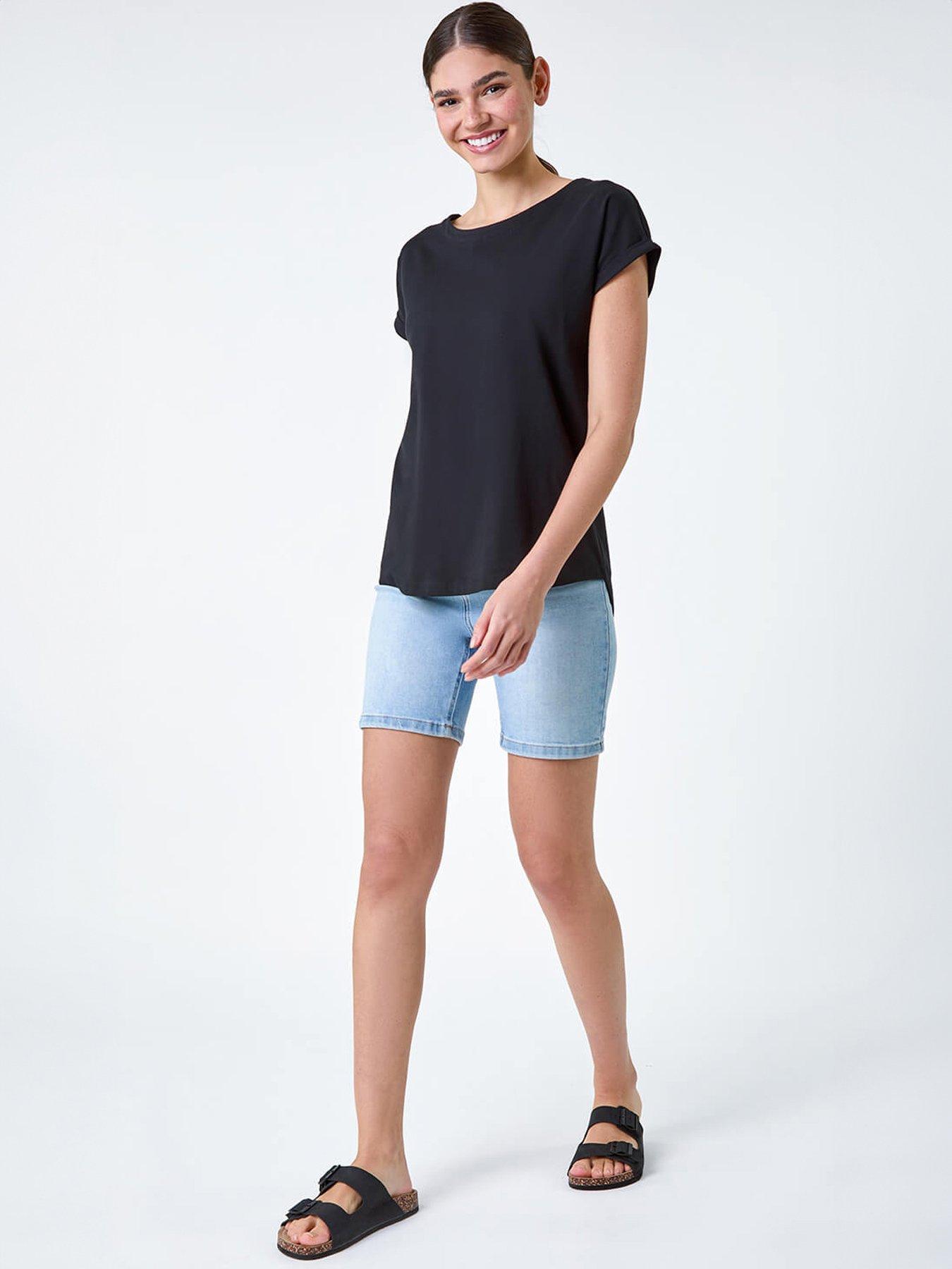 Roman Plain Stretch Cotton Jersey T-shirtTop up your basics with this everyday essential the first Roman Plain Tee! This versatile top is crafted from stretch jersey fabric for ultimate all-day comfort to see you through any occasion in style. Effortlessly trendy this top promises to elevate your wardrobe with its chic simplicity short sleeve body and flattering round neckline. A real suitcase staple this t-shirt offers endless possibilities for creating casual looks all season long. Get holiday ready with the addition of denim shorts and sandals or add culottes and a woven shirt for easy transitional dressing.