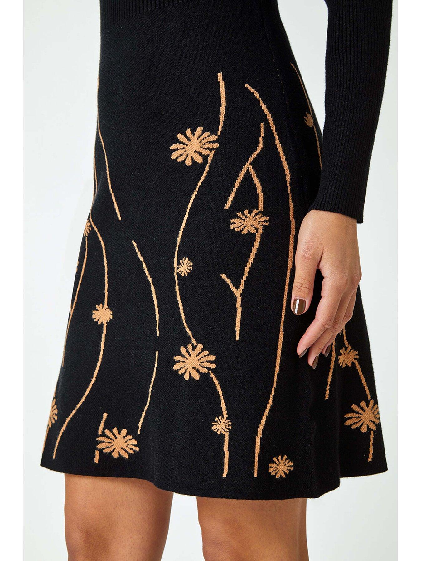 Roman Ribbed Knit Floral Stretch Dress - BlackElevate your daytime collection with this versatile knitted dress. Our newest addition to the Roman range is the ideal Winter staple, with a cosy turtleneck and full length sleeves that are perfect for the colder weather. It features an ornate floral print that ascends the skirt in Autumnal hues and is crafted from a stretch knitted ribbed fabric that's sure to keep you warm as the weather gets colder. Wear with boots and a padded coat for a versatile daytime ensemble.