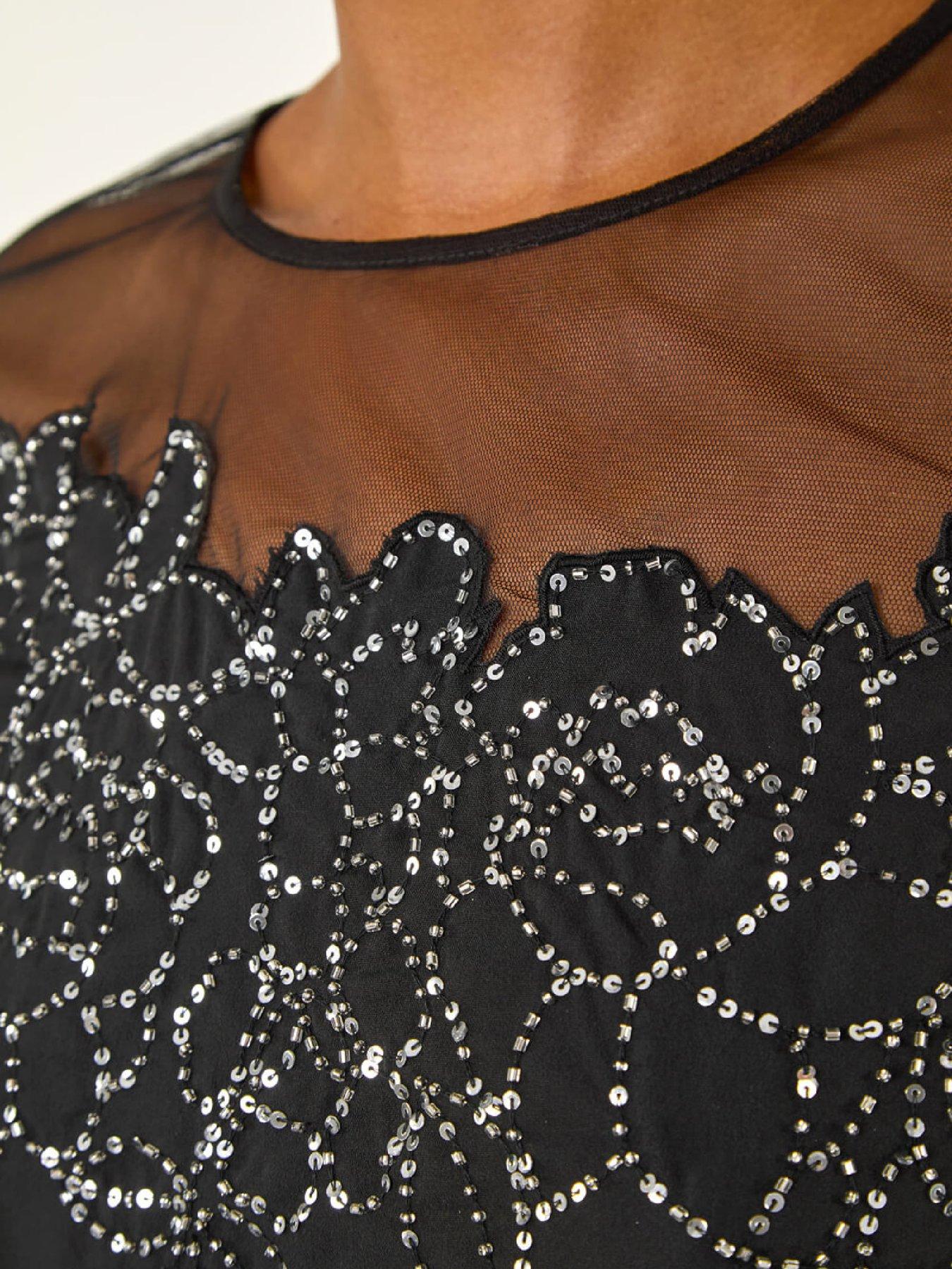 Roman Sequin Floral Sheer Top - BlackShine bright this Autumn/Winter in this stunning sequin floral top. Adorned with a beautifully embroidered floral design featuring sparkling sequins this top is a real showstopper. The long sleeves come with elastic cuffs for a comfortable fit while the round neck and elastic hem add simple yet stylish details. Pair with your favourite jeans and ankle boots for a chic and festive look that will turn heads wherever you go!
