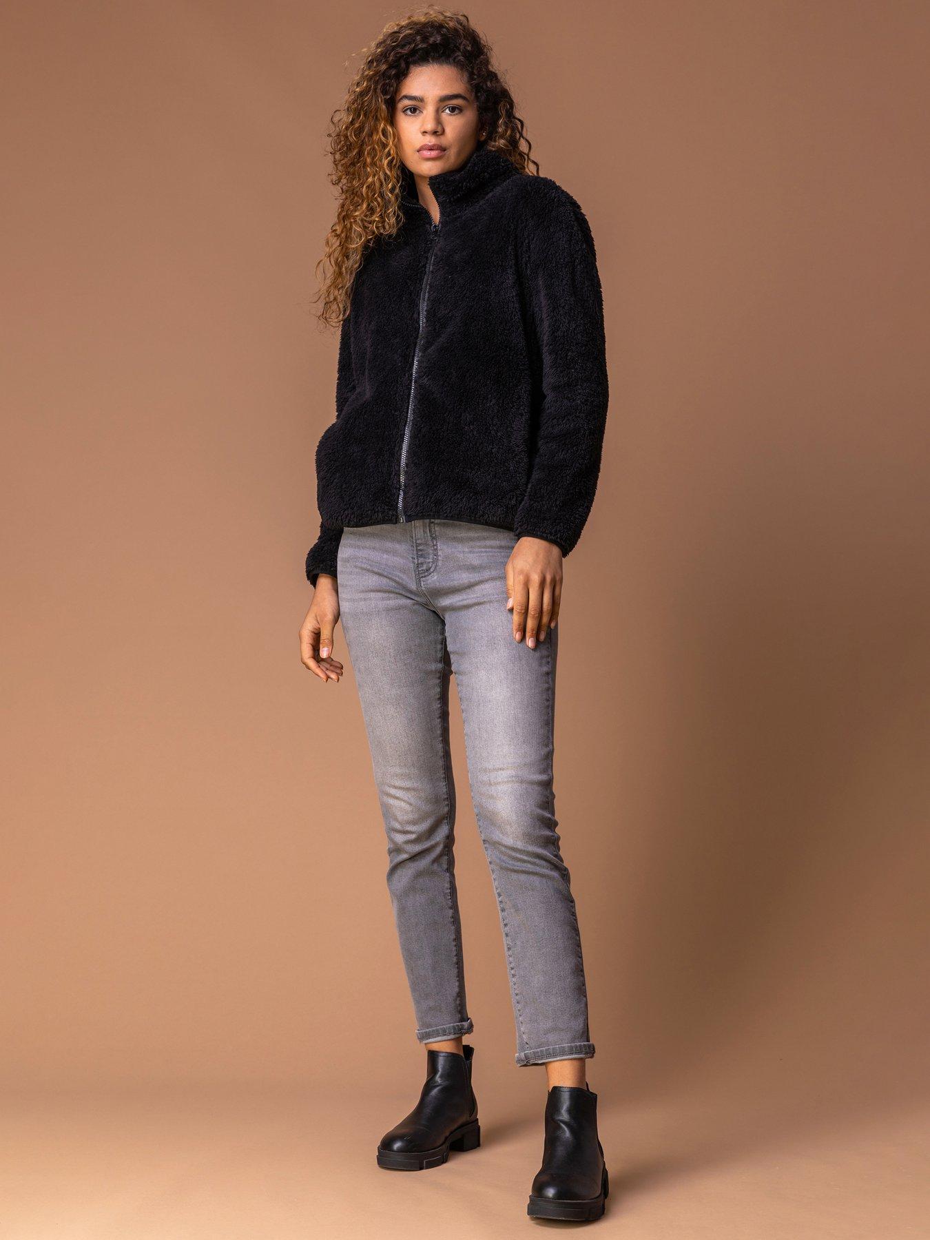 Roman Soft Sherpa Fleece Jacket - BlackDon't let the seasonal changes stop you with this sherpa fleece jacket. This lightweight soft to the touch jacket is ideal for layering with its cosy high neckline that can be worn up or folded down. Paired with your favourite top and jeans, this zip front fastened jacket with casual side pockets will keep you cosy throughout when the chill starts to hit.
