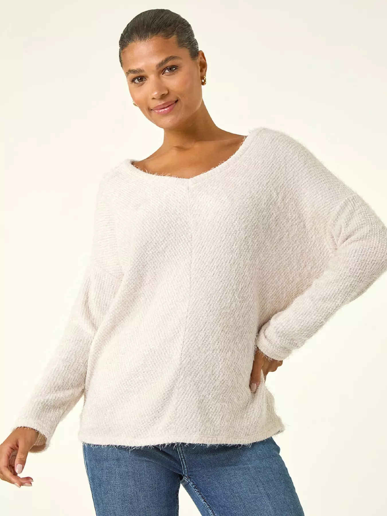 Snuggle up in style this Autumn/Winter with this soft touch top. Crafted from a textured jersey fabric this cosy top features a flattering v-neckline and finishes at the low hip perfect for layering. Complete with long sleeves in a fluffy fabric this top- Material Content: 100% Polyester Lining: 100% Polyester