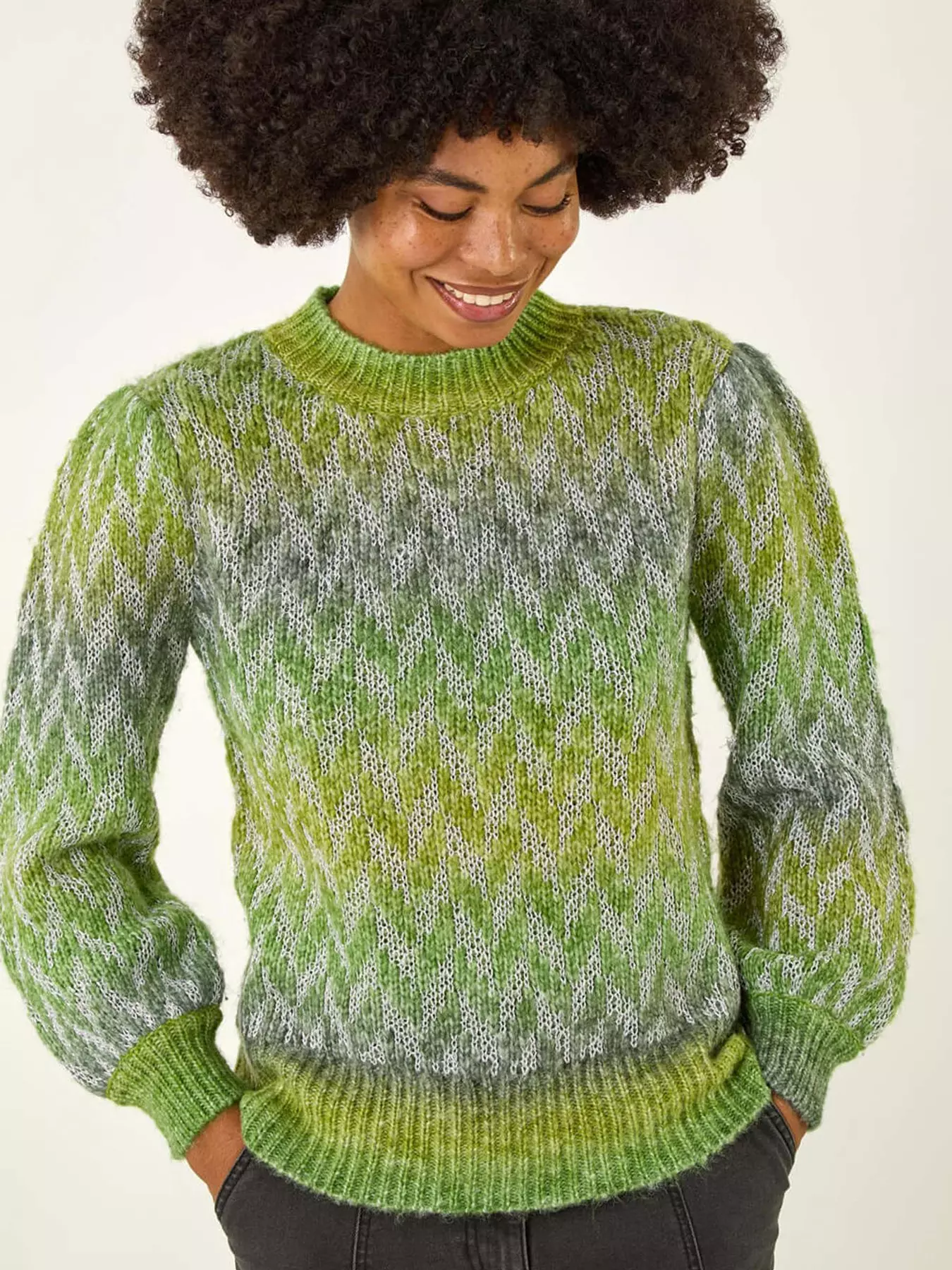 Add a touch of sparkle to your Autumn/Winter wardrobe with this chic space dye knit in green tones. This soft knit features a flattering crew neck and long sleeves perfect for staying cosy and stylish. Pair with your favourite jeans and ankle boots for a casual and on-trend look that will take you from day to night effortlessly!- Material Content: 100% Acrylic