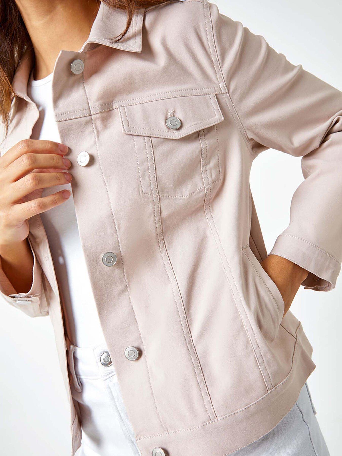 Roman Stretch Pocket Detail JacketA classic jacket style with a comfortable twist, this piece is crafted from our favourite bengaline fabric. Boasting all the details you'd expect from a jean jacket: a smart collar, patch pockets and fully open button front, this jacket is finished with full length sleeves with cuffs. Designed in an on trend colour this can be worn styled in a multitude of ways; with printed dresses, denim shorts or the matching skirts - wear this with ease throughout Spring & Summer!
