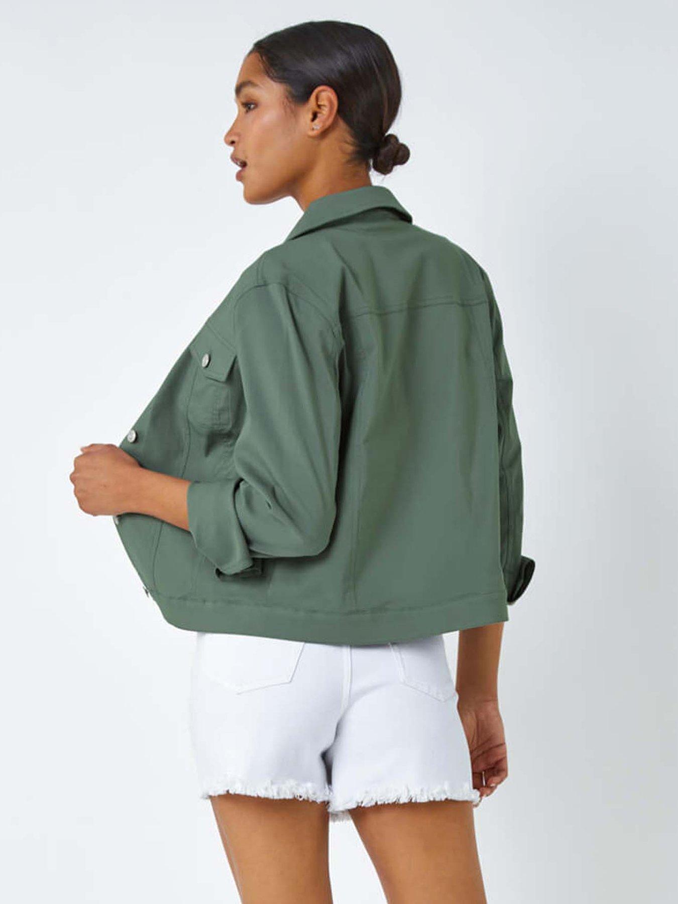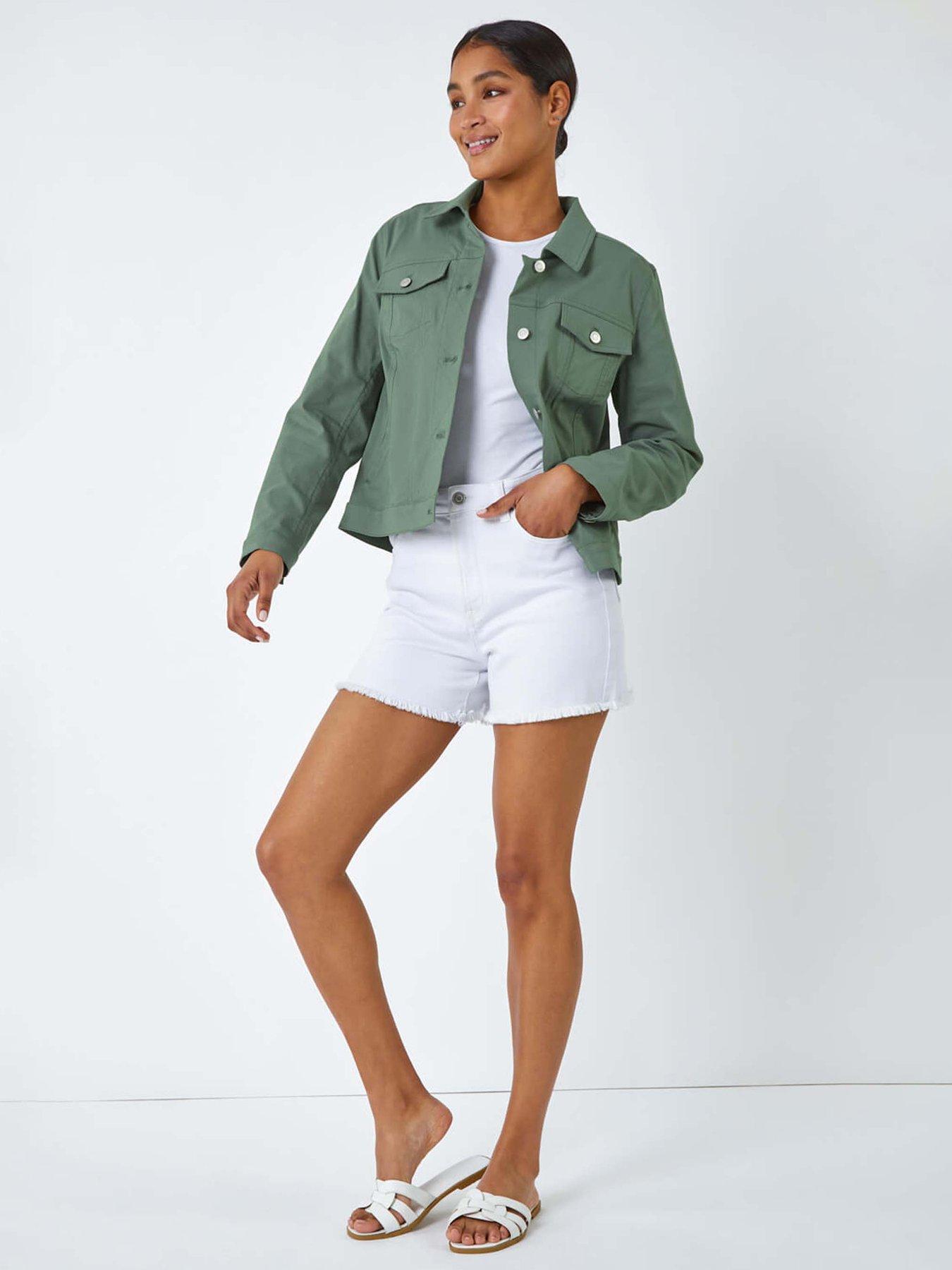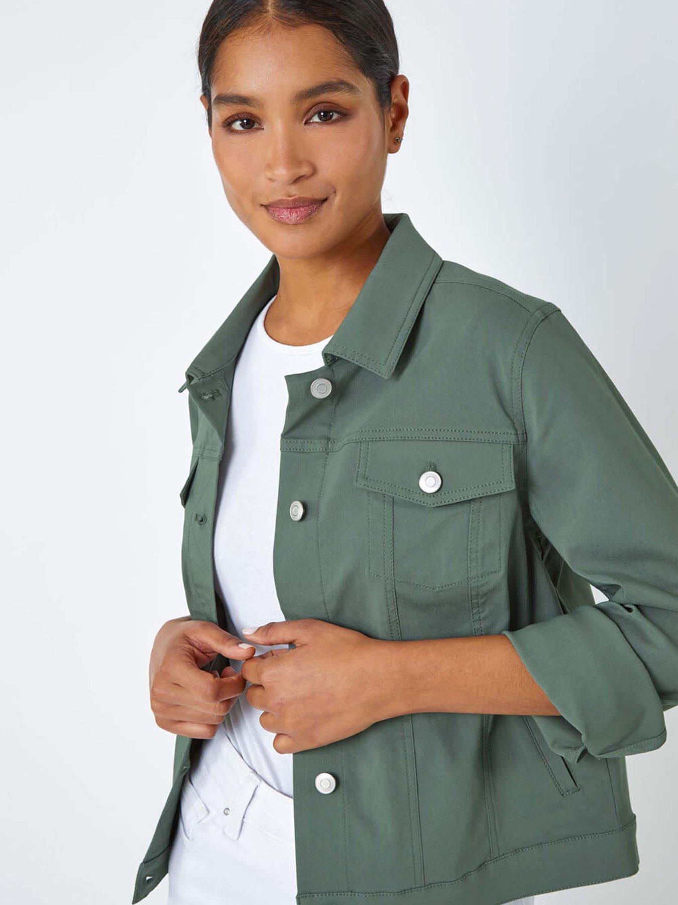 Roman Stretch Pocket Detail JacketA classic jacket style with a comfortable twist, this piece is crafted from our favourite bengaline fabric. Boasting all the details you'd expect from a jean jacket: a smart collar, patch pockets and fully open button front, this jacket is finished with full length sleeves with cuffs. Designed in an on trend colour this can be worn styled in a multitude of ways; with printed dresses, denim shorts or the matching skirts - wear this with ease throughout Spring & Summer!