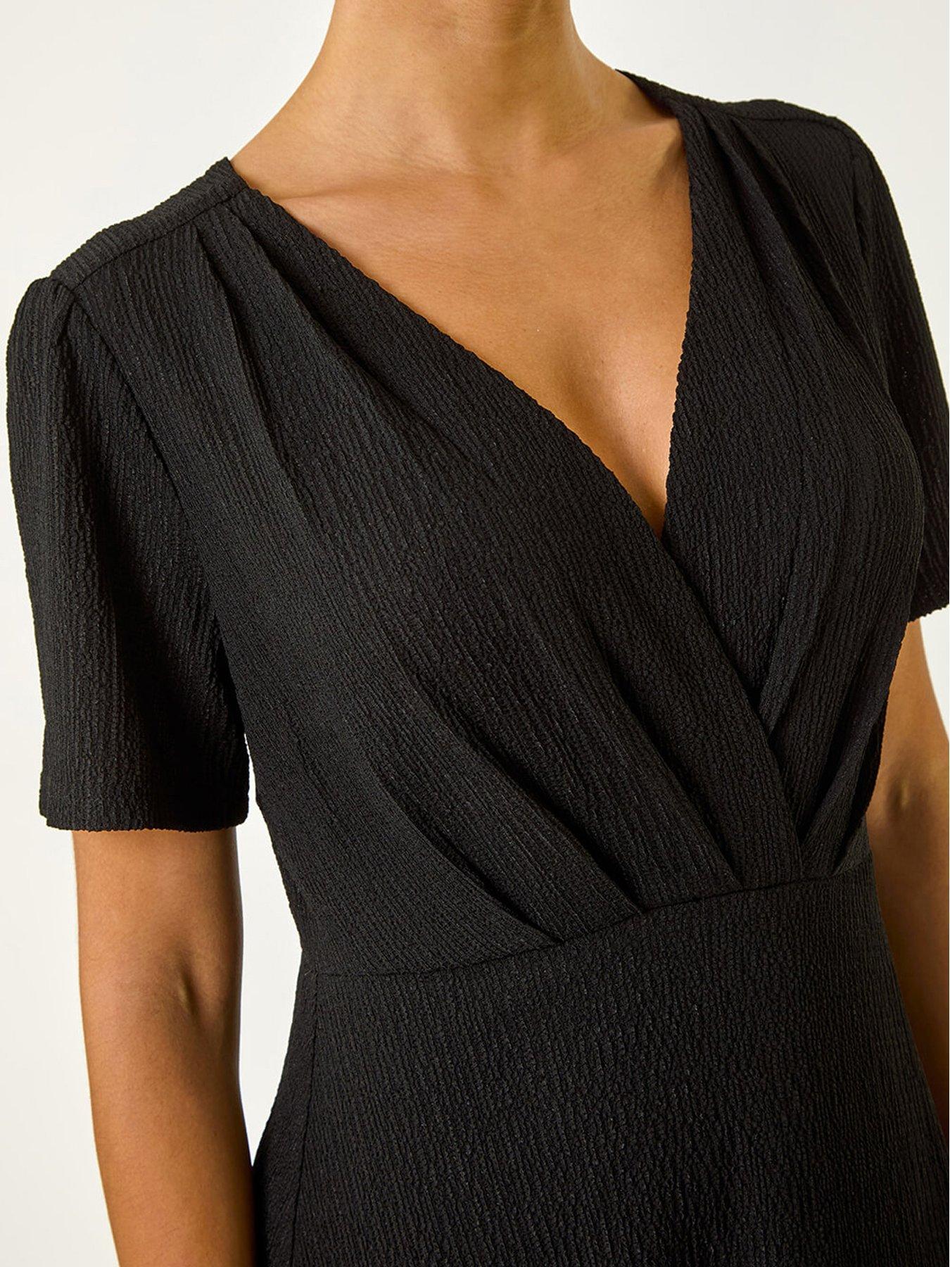 Roman Textured Wrap Bodice Midi Dress - BlackTurn heads with this textured wrap bodice midi dress featuring a flattering V-neckline and classic short sleeves. Designed in a timeless fit and flare silhouette it accentuates your waist while offering effortless movement. Perfect for any occasion this dress pairs beautifully with sandals and a denim jacket for a chic layered look that transitions seamlessly from day to evening.