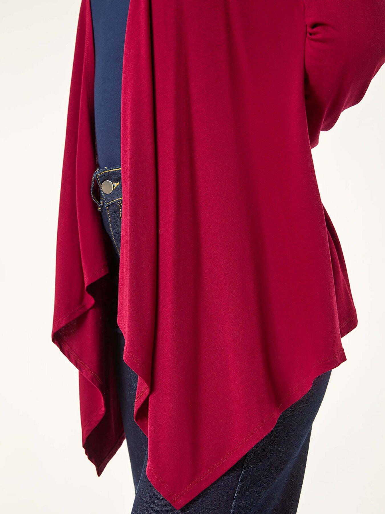 Roman Waterfall Front Jersey Knit Cardigan - RedA wardrobe essential, our cosy cardigan is perfect to layer over any outfit all year round. This jersey-crafted knit cardigan boasts long sleeves and a comfortable cardigan shape. Featuring an edge-to-edge opening that falls to the hips in a waterfall style, keep it casual by pairing it with jeggings and ankle boots for a complete fall look!