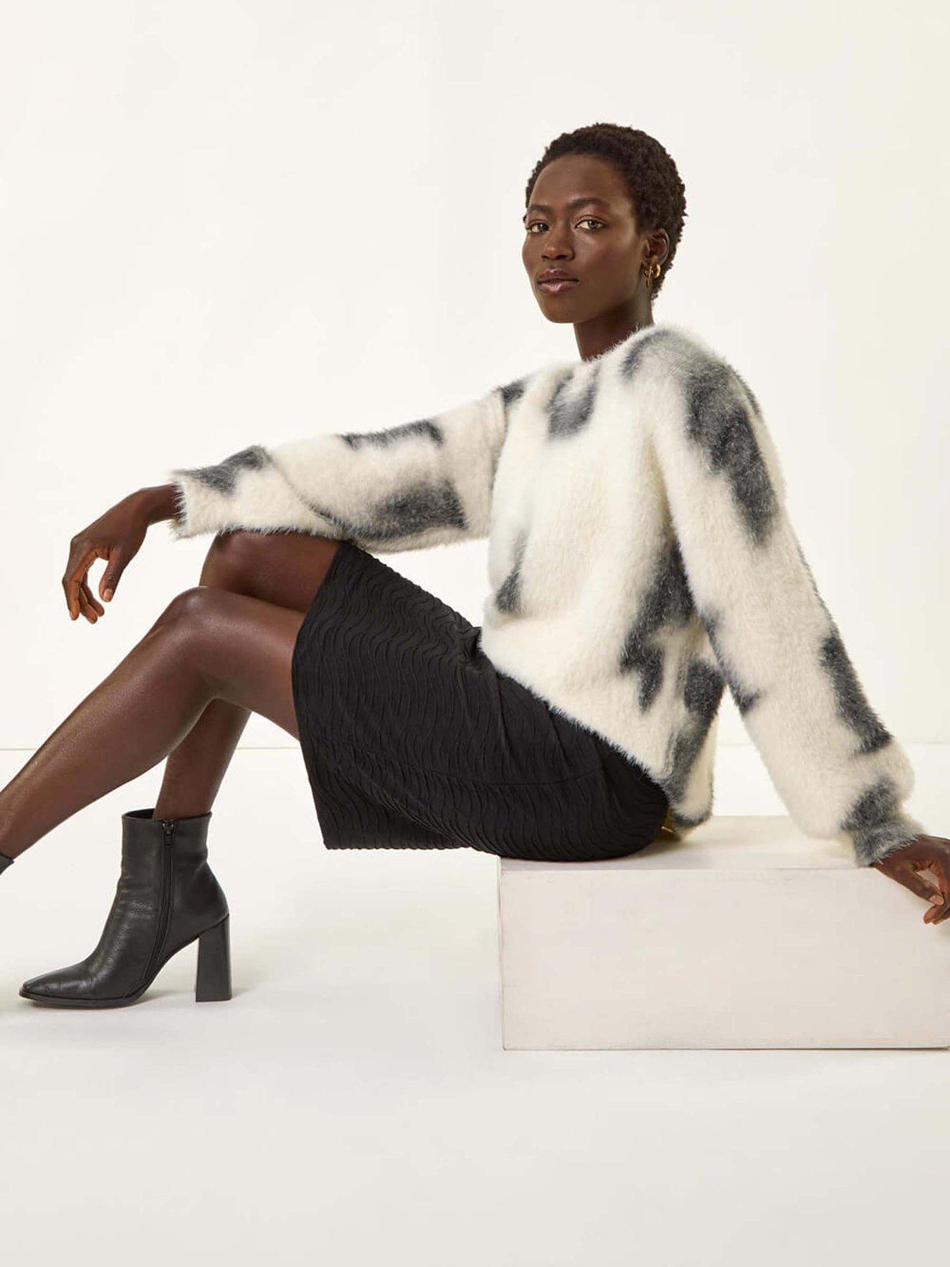 Roman Wave Textured Stretch Pencil Skirt - BlackThis elegant wave textured jersey pencil skirt offers a sleek and flattering fit. Designed for both comfort and style its classic silhouette makes it a versatile wardrobe staple. Perfect for work or evening outings pair it with a blouse and heels for a chic and sophisticated look.