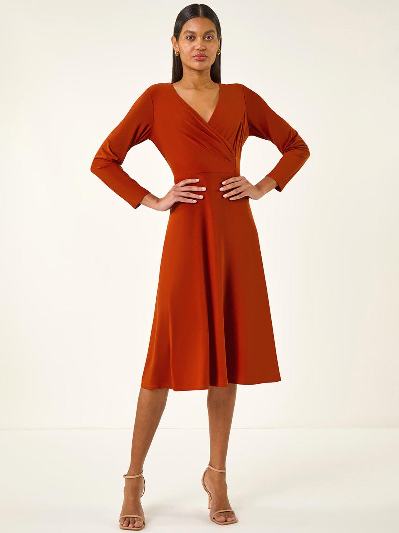 Roman Wrap Bodice Tie Waist Midi DressGet ready for sunny days in style with our gathered waist midi dress. The mock wrap bodice and charming v-neck create a flattering shape while the waist cinches in for a defined silhouette. Featuring elegant sleeves this dress is perfect for all your Spring/Summer events. Pair with a denim jacket for a chic and casual look that's effortlessly chic.