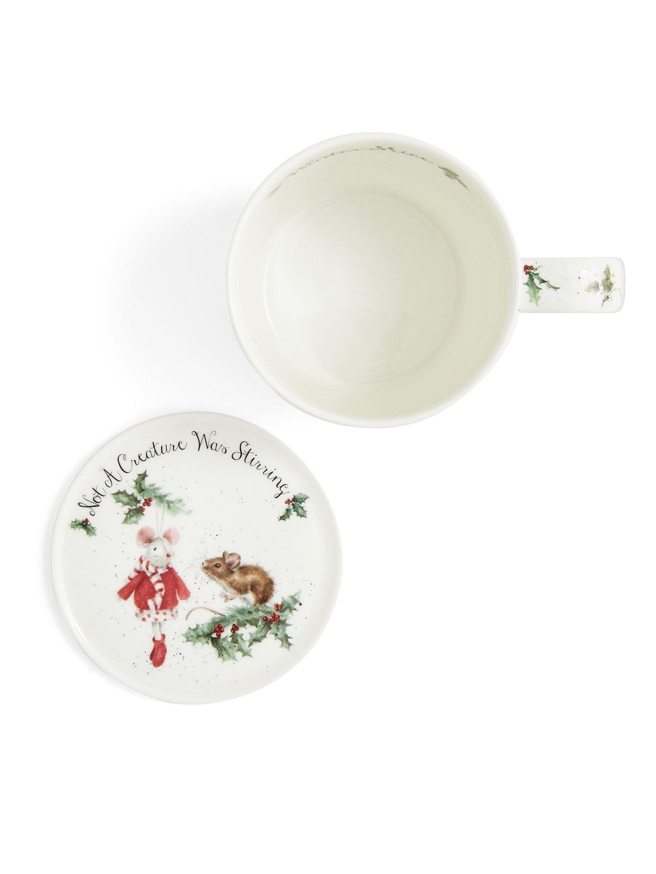 Royal Worcester Wrendale Winter Mice Mug and Coaster SetA part of the Wrendale collection by Royal Worcester, the Winter Mice mug and coaster set is decorated with beautiful watercolour-style prints that are full of festive charm.Made from fine bone china, the mug features a trio of mice perched on a snowy branch, while the ceramic coaster sees one of the adorable animals sniffing at a hanging tree decoration. Both pieces are finished with elegant typography, along with holly and berry artwork in key areas. Every piece in the Wrendale collection uses hand-painted designs originally created by artist Hannah Dale in the heart of Lincolnshire. This mug has a 310 ml capacity and is both microwave and dishwasher safe. It comes complete in an open presentation box, making it a unique gift for loved ones. Search Wrendale to see the whole collection available.