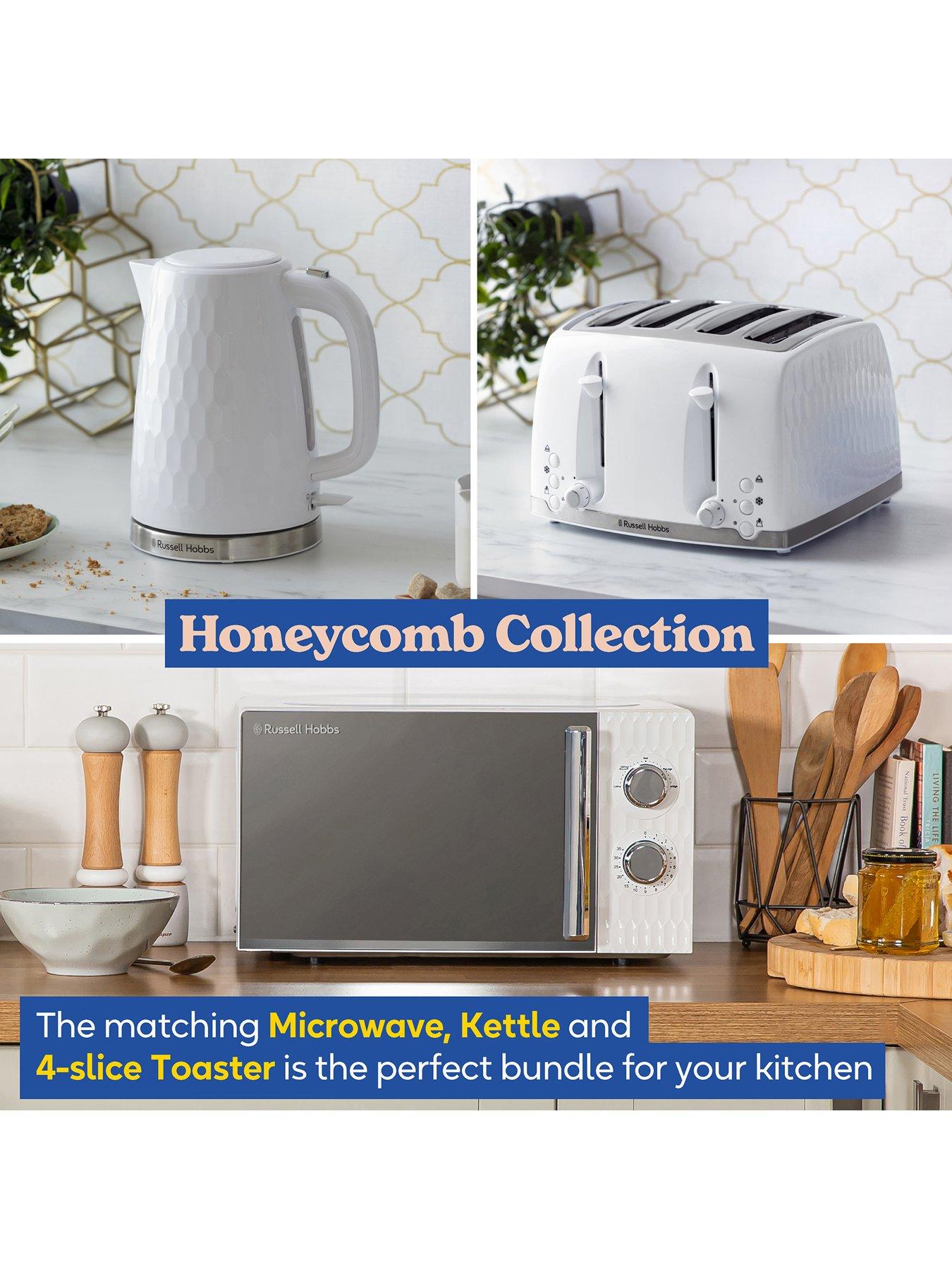 Russell Hobbs Honeycomb Bundle - Kettle, 4 Slice Toaster and Microwave