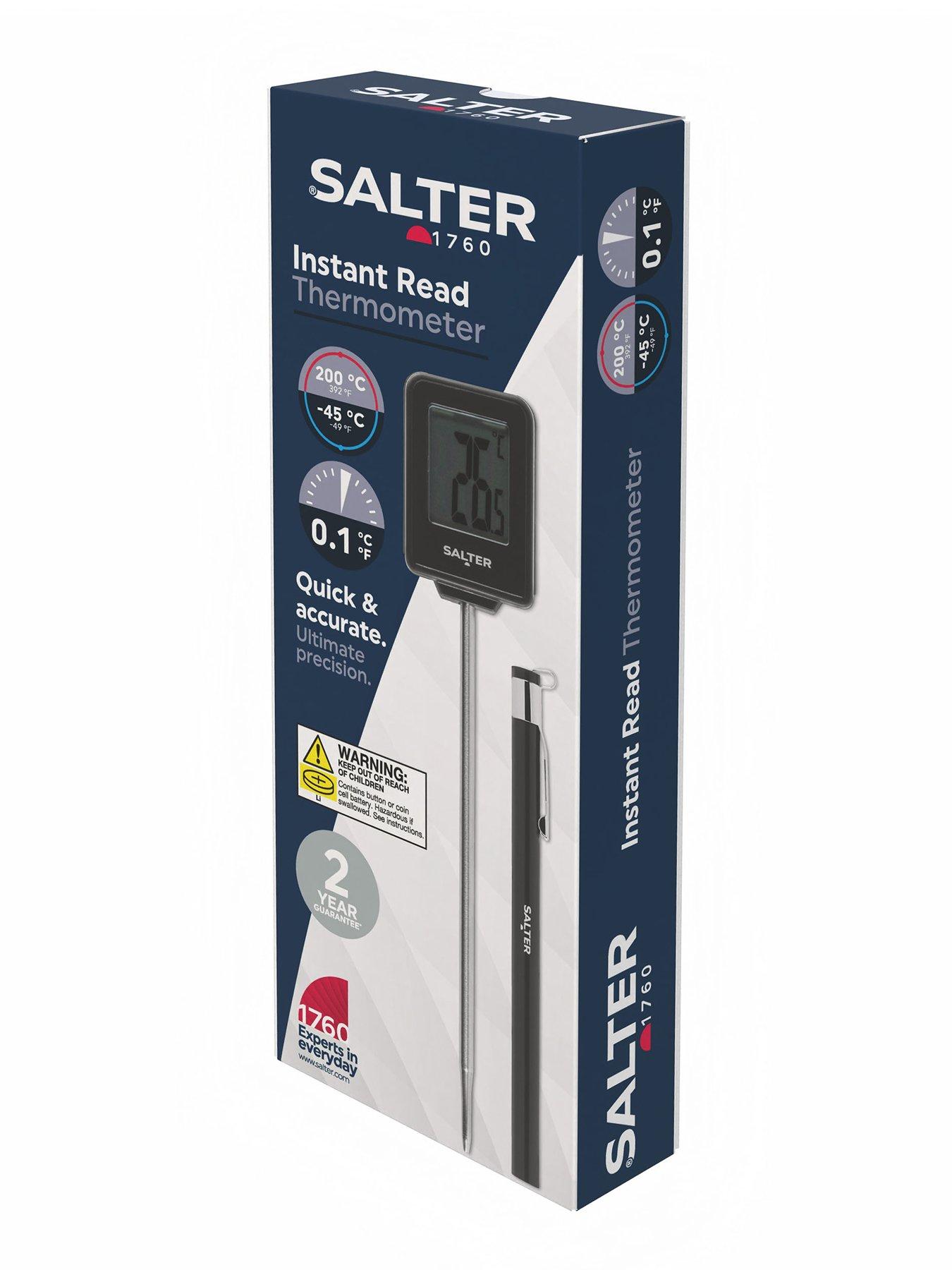 Salter Instant Read Meat ThermometerThe Salter Instant Read Thermometer delivers swift and accurate temperature readings in both Celsius and Fahrenheit. Measuring from -45°C to 200°C (-49°F to 392°F) in precise 0.1-degree increments, it's perfect for ensuring your Sunday roast, barbeque, or air-fried dishes are cooked to perfection. With its durable design and easy-to-read display, achieving ideal cooking temperatures has never been simpler. Ensure perfectly delicious results every time with the Salter Instant Read Thermometer!