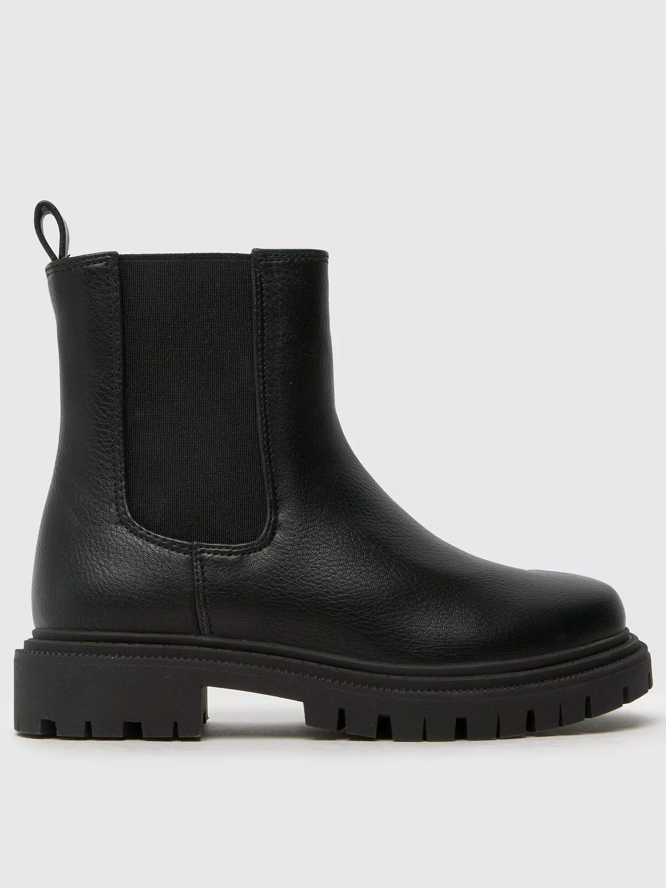 - Add the Click Chunky Chelsea Boots from schuh to your little ones rotation! Arriving in junior sizes - these kids' boots boast smooth man-made uppers, elasticated inserts and a chunky rubber sole unit. These versatile black boots are a must!