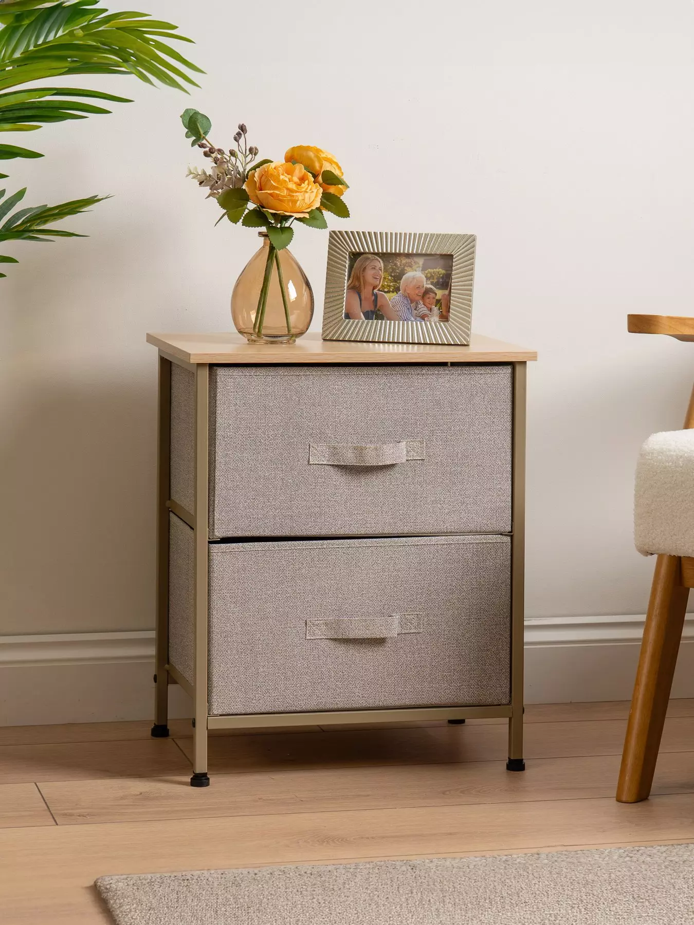 Bring warmth and effortless organisation to your space with this 2 drawer beige cabinet with beige fabric drawers.With its soft, neutral tones and clean, minimalist design, this versatile piece blends seamlessly into any interior style-from modern to rustic. The sturdy beige frame is complemented by matching fabric drawers, offering a cohesive look and lightweight functionality.