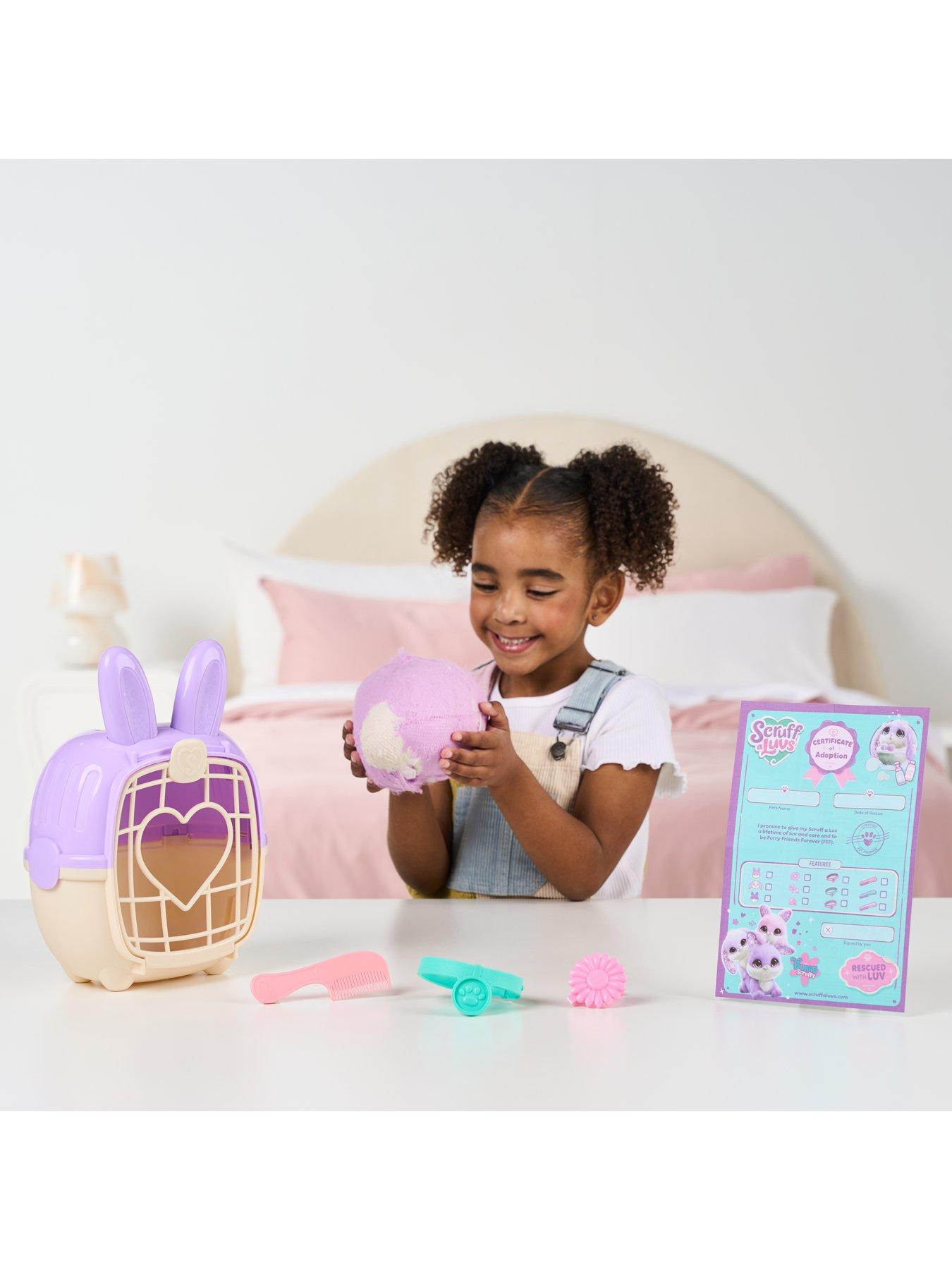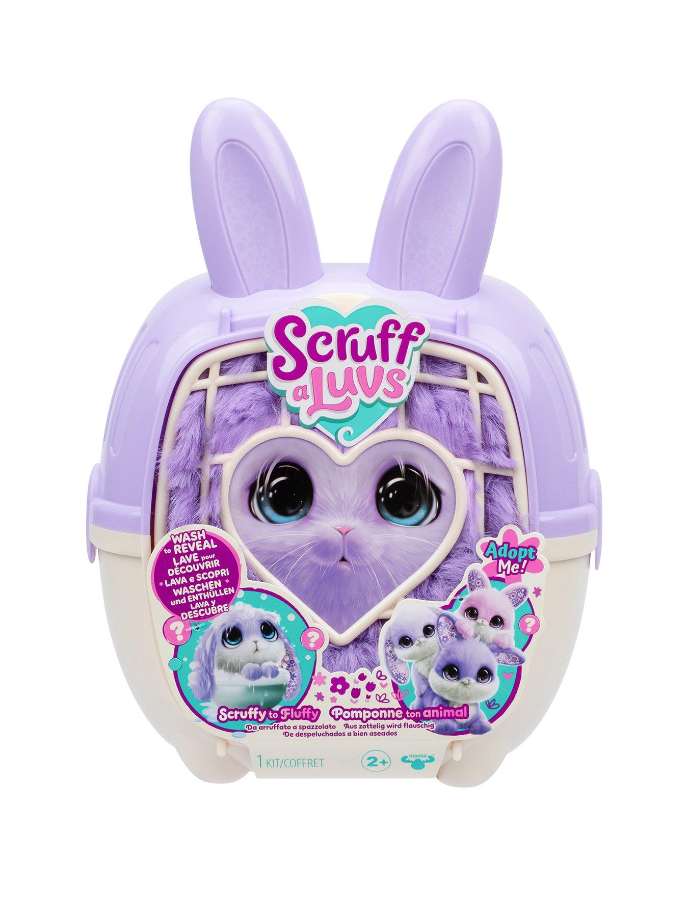 Scruff-A-Luvs ScruffaLuvs Bunny Scruffs Single PackScruffaLuvs Bunny Scruffs need your help! Rescue your sad, scruffy ball of fur, wash them, and reveal their true identity. Each Bunny Scruff starts as a matted ball of fur that needs your love and care. Through a magical wash-to-reveal process, your child will reveal their cutest fluffy friend!Wash, dry, and groom your Bunny Scruff to build the ultimate bond. Use the comb to brush their fur, add a collar, attach a hair clip, and then complete the adoption certificate to make them truly yours! There are 3 Bunny Scruffs to rescue, each in a different shade of purple with beautiful floral detailing in their ears. They are also super-soft and cuddly, perfect for snuggles. Your child will love caring for their Bunny Scruff and carrying them in their cozy bunny carrier, taking them everywhere they go! Rescue and adopt a Bunny Scruff and find your FFF - Fluffy Friend Furever! ScruffaLuvs - Rescued With Luv.