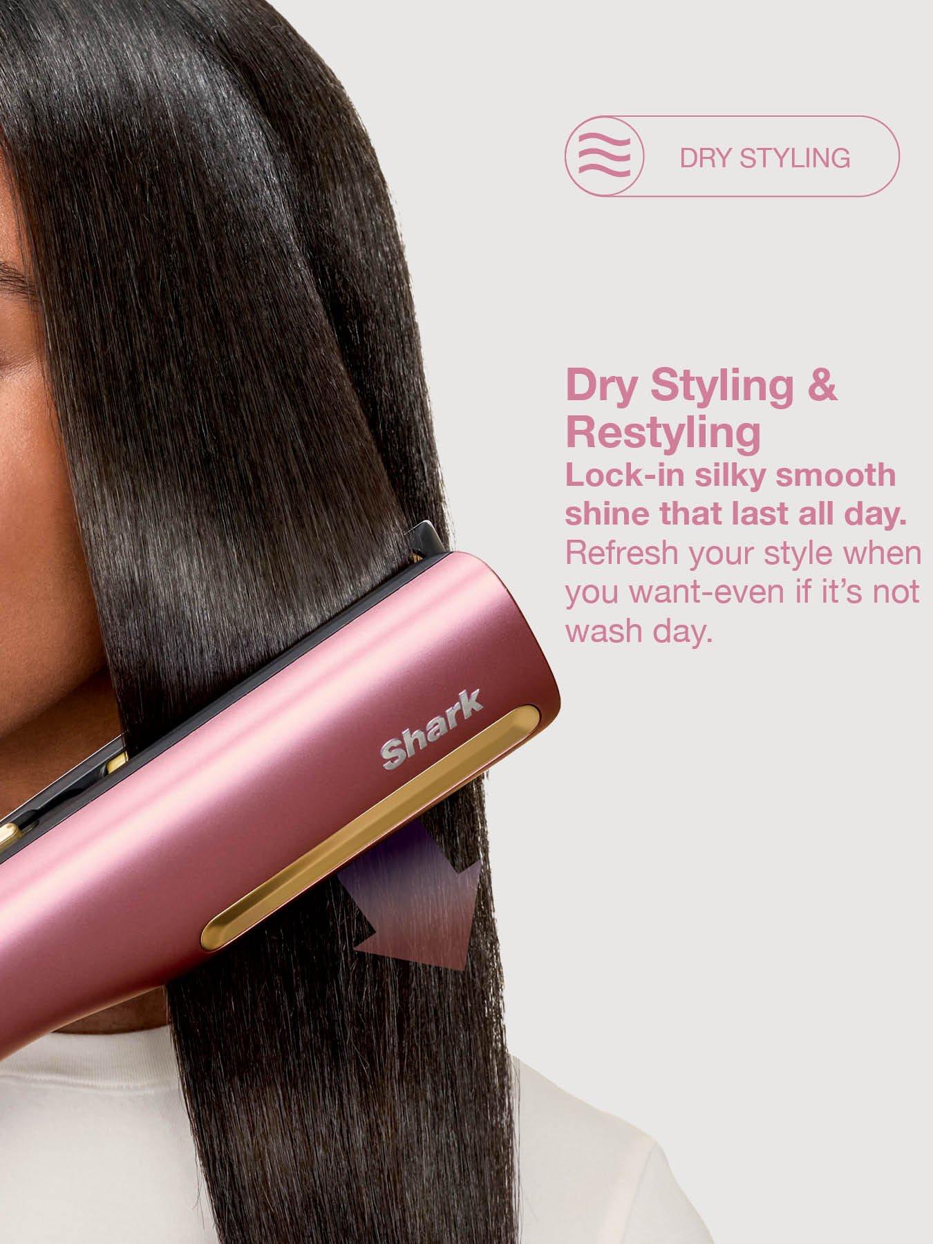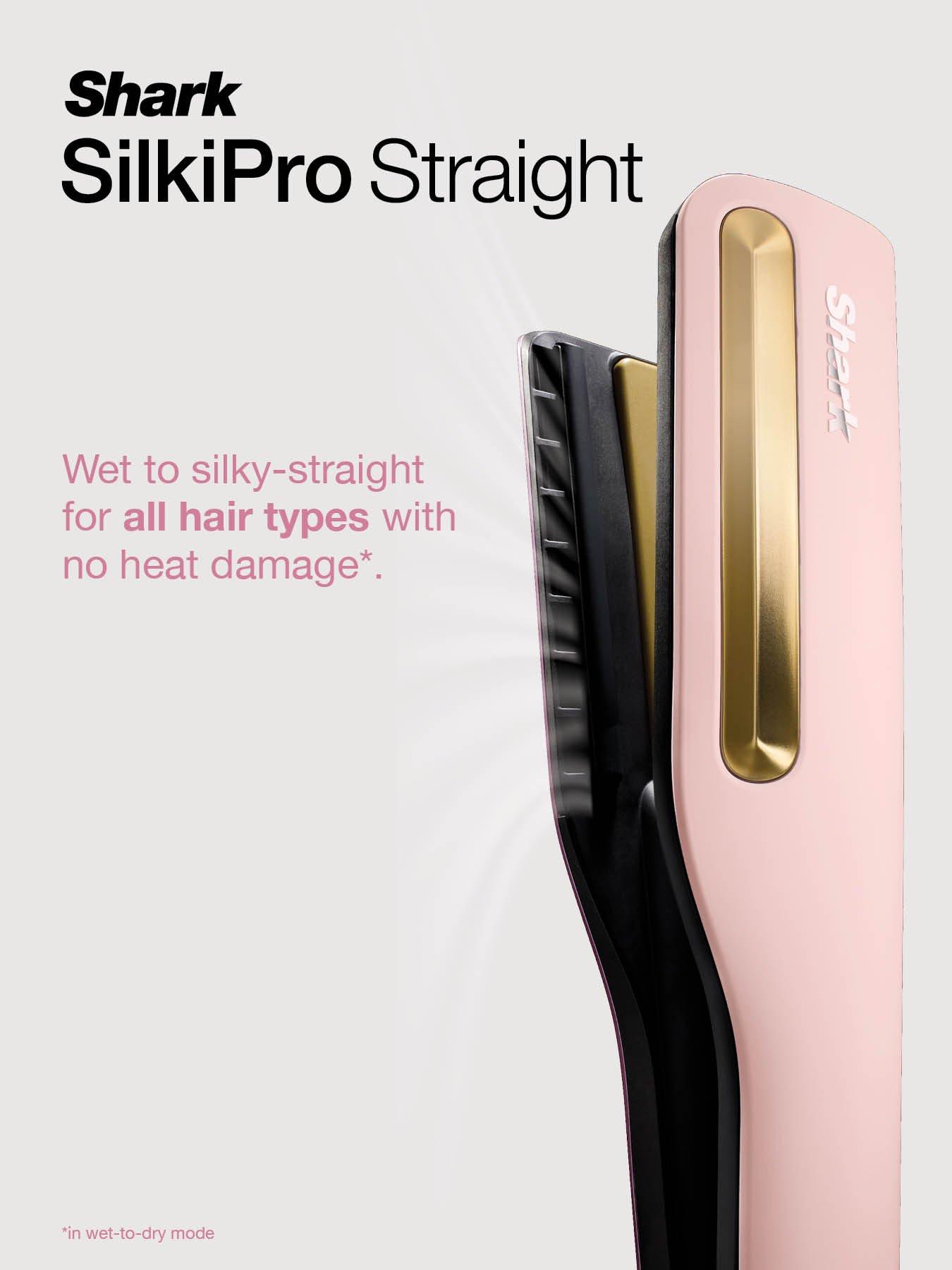 Shark SilkiPro Straight - Rose PetalThe SilkiPro Straight offers wet-to-dry styling in one tool. HeatSense Ceramic Plates, Rapid-Dry technology and interchangeable combs ensure silky smooth results that last all day, without the heat damage*. Two modes allow for safe styling on wet hair, and extra shine** or retouching on dry hair. High-velocity airflow efficiently dries both at the root and down the strand. The versatile design allows straightening, shaping, curling or smoothing for effortless hair styling. With efficiency in mind, the airflow reduces when the tool is not in use between passes.2-in-1 TOOL - Combines heat-controlled straightener ceramic plates with powerful hair dryer airflow to dry and style safely from wet or dry for all hair types – no need for separate tools. RAPID DRY TECHNOLOGY - High velocity airflow delivers fast silky smooth styles that last all day. HEATSENSE CERAMIC PLATES - Integrated heat sensors measure heat 1000x per second and adjust for no heat-damage styling*. DUAL STYLING MODE - Wet mode dries and straightens wet hair into silky smooth styles safely with no heat damage*. Dry mode cuts the airflow, turning the tool into a straightener for results with extra shine and less frizz**. SILKI SMOOTH COMB COLLECTION - 3 interchangeable combs for high shine, smooth & silky results on all hair types VERSATILE STYLING - the design allows straightening, shaping, curling or smoothing for effortless hair styling COLOUR - Rose Petal