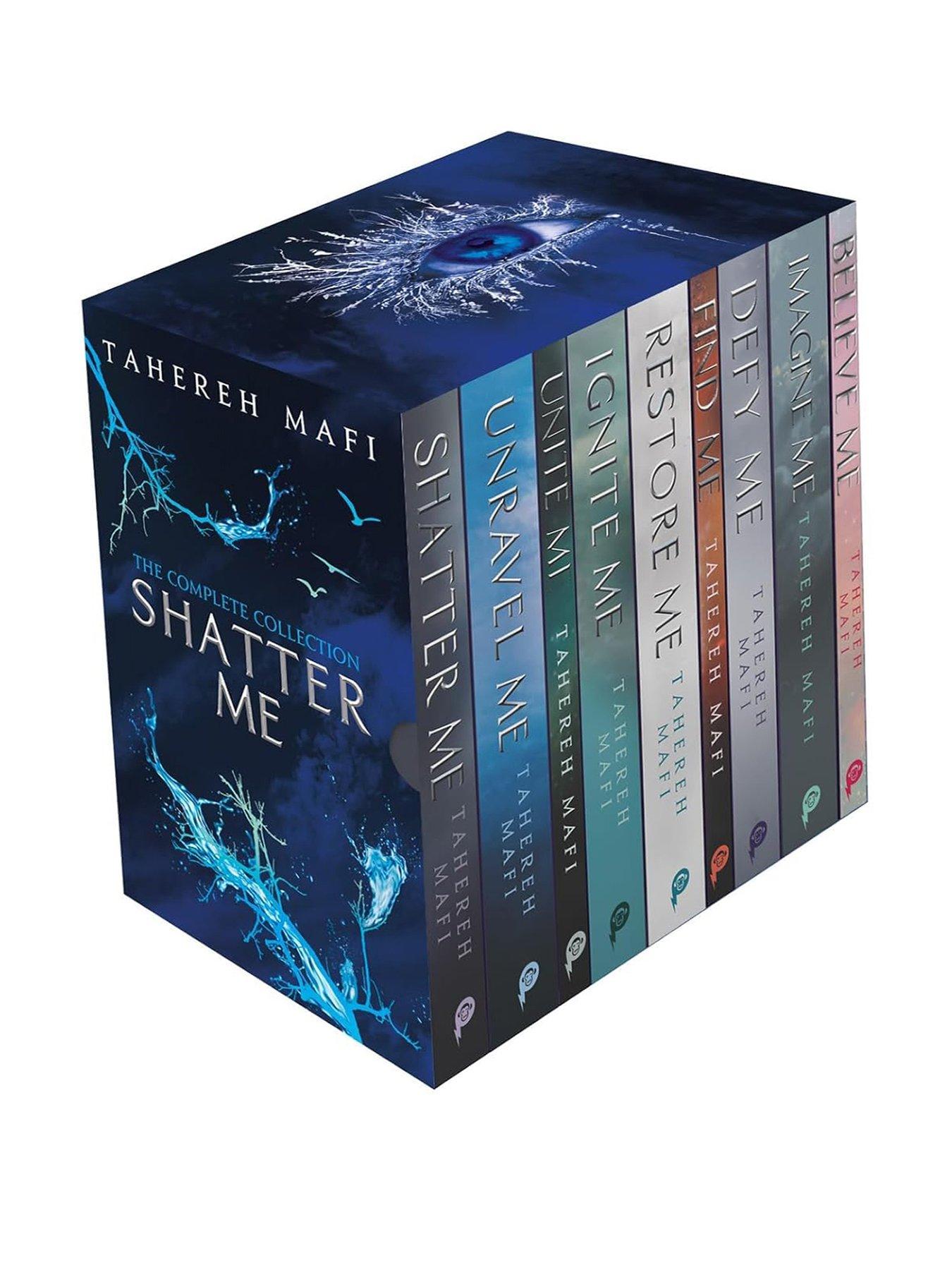 Shatter Me 9 Book Box SetEnter the addictive world of the Shatter Me series with all nine books in this exclusively designed beautiful box set. A fragile young teenage girl is held captive. Locked in a cell by The Reestablishment - a harsh dictatorship in charge of a crumbling world. This is no ordinary teenager. Juliette is a threat to The Reestablishment's power. A touch from her can kill - one touch is all it takes. But not only is she a threat, she is potentially the most powerful weapon they could have. Juliette has never fought for herself before but when she's reunited with the one person who ever cared about her, the depth of the emotion and the power within her become explosive ...This complete collection of the epic and romance fantasy series includes: Unravel Me, Ignite Me, Restore Me, Defy Me, Imagine Me, Believe Me and the two novellas Unite Me and Find Me.