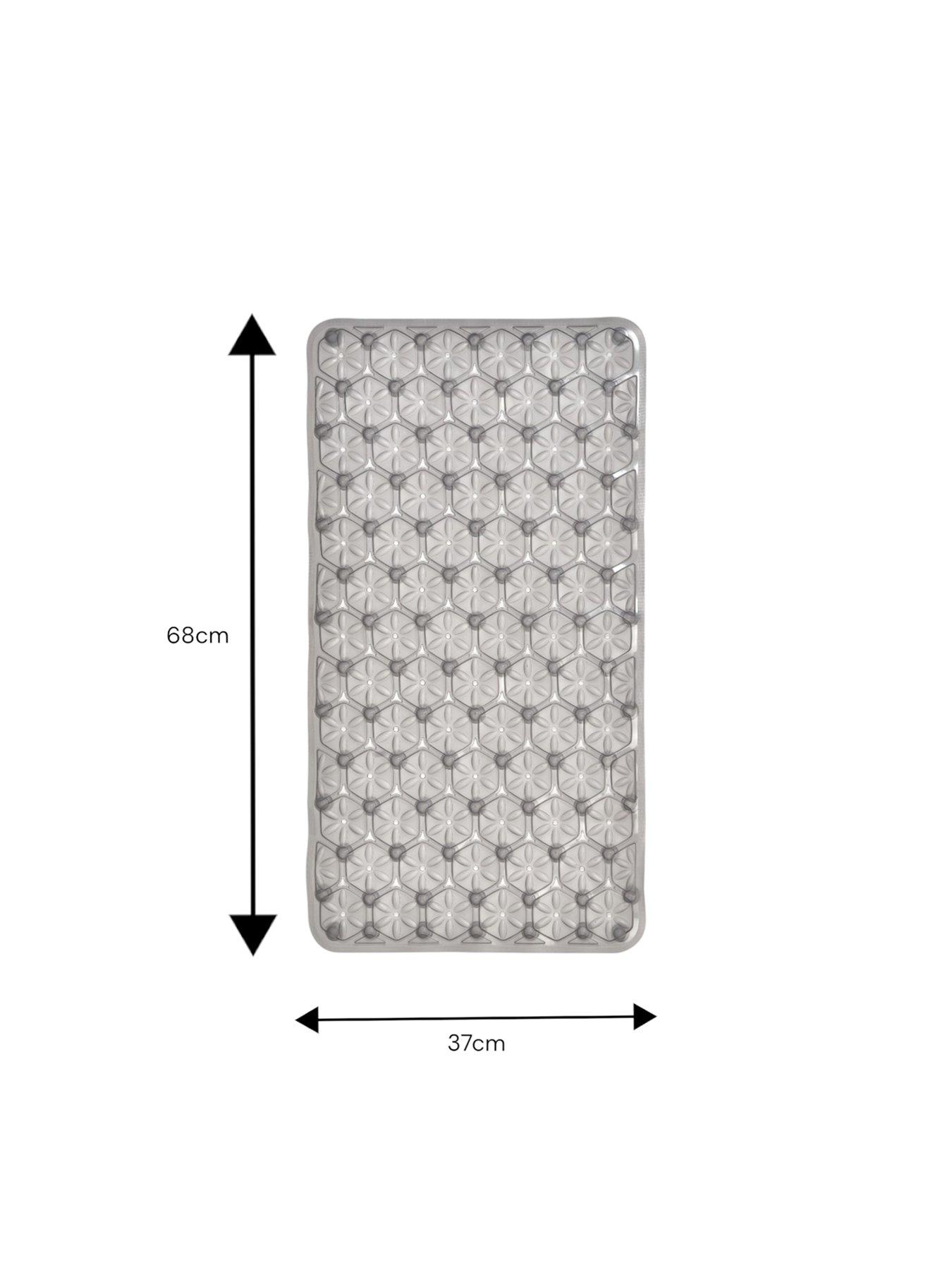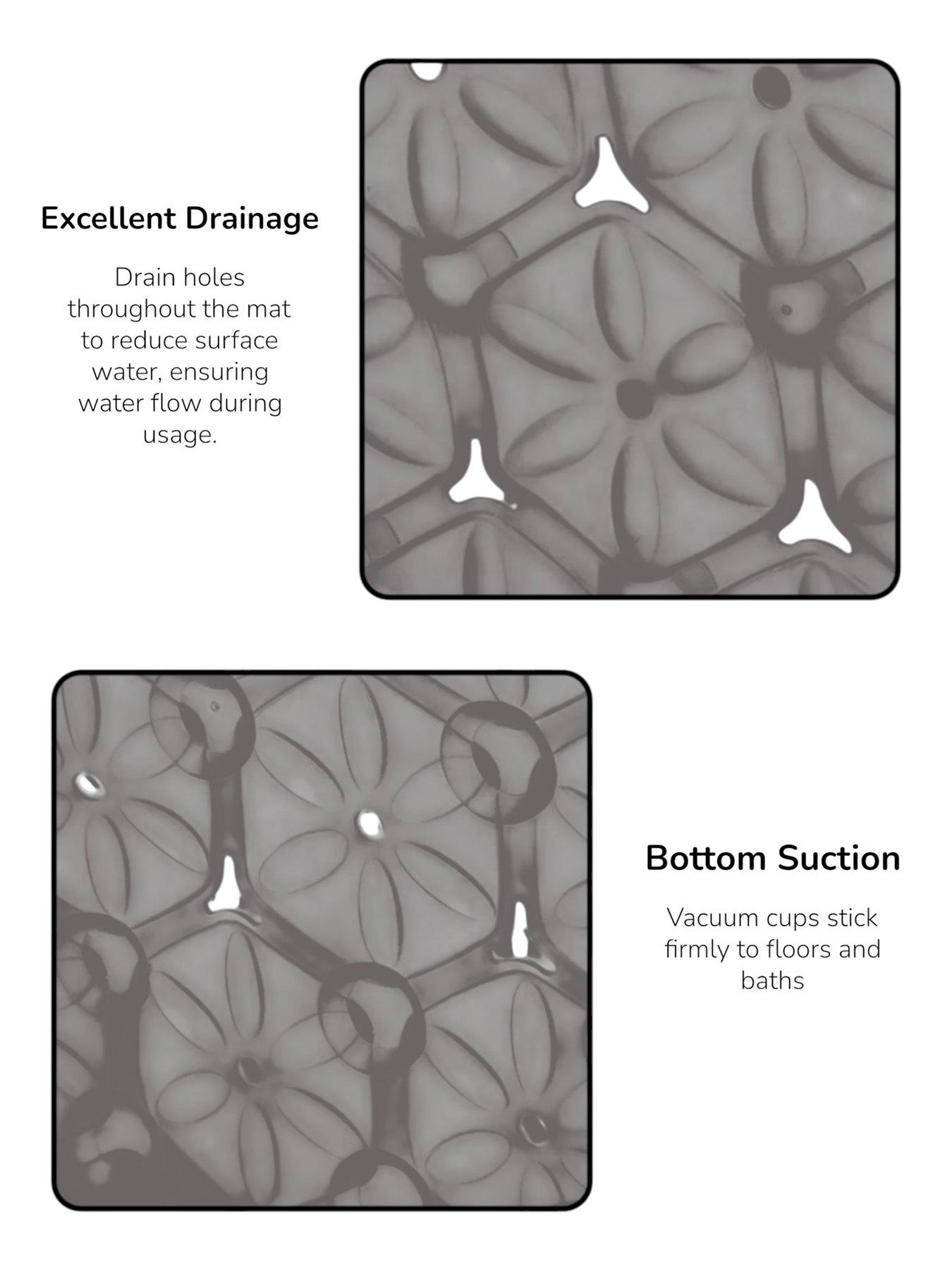 Showerdrape Laguna Bath Mat GreyThe Laguna Suction Bath Mat is designed to enhance both safety and durability in your bathroom. Featuring a textured surface for added grip, it provides reliable underfoot stability in the bath or shower.Thoughtfully designed with small drainage holes, the mat allows water to circulate freely. This helps prevent water build-up, reduce surface pooling, and minimise residue for a more hygienic bathing environment. Made from high-quality PVC, the Laguna Grey anti-slip mat is antibacterial, mildew-resistant, and latex-free - offering comfort, cleanliness, and peace of mind. Dimensions: 69cm x 37cm Please Note: Always ensure the mat is firmly secured using the suction cups before stepping into the bath or shower.