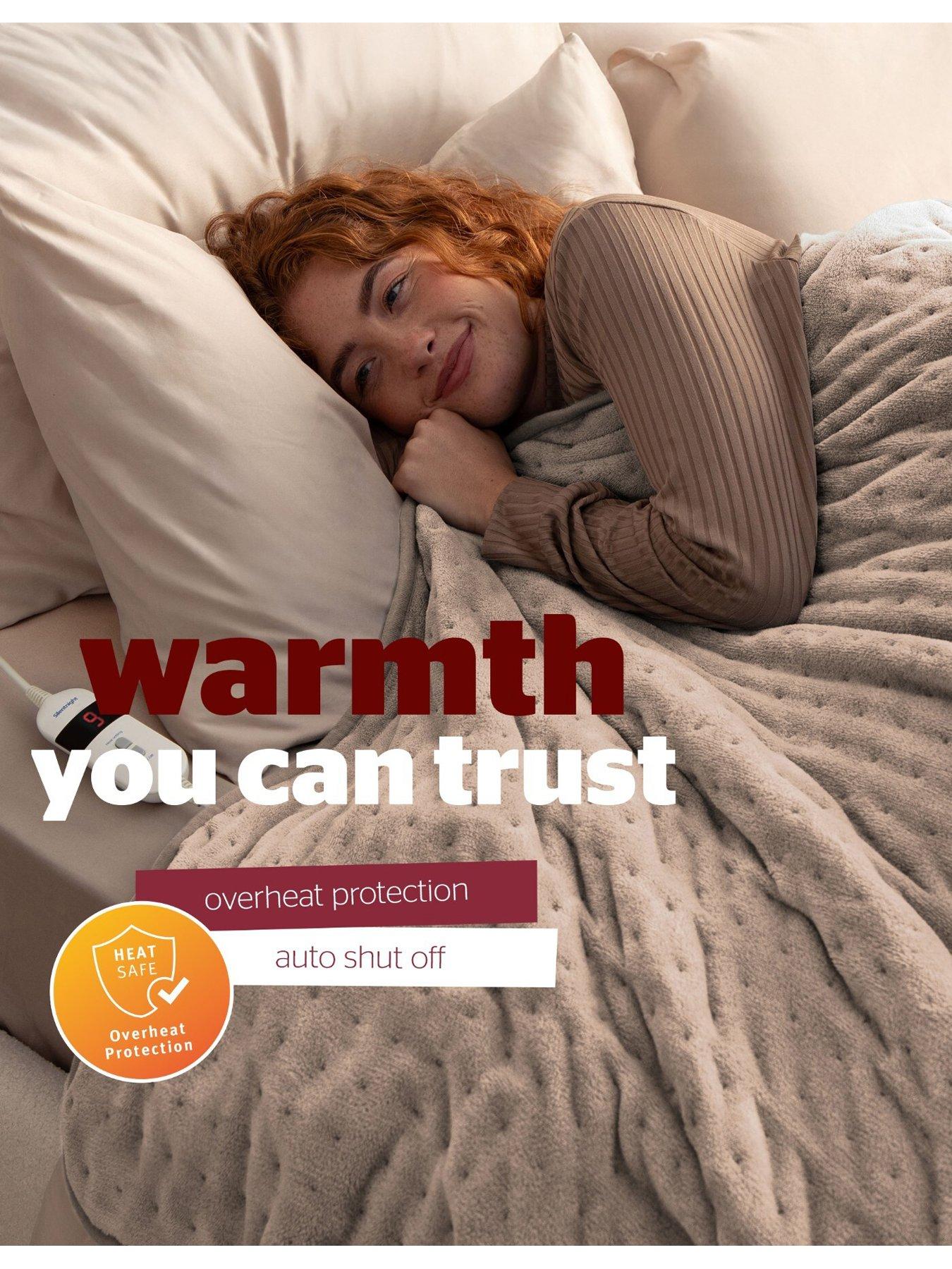 Throw is uniquely designed with stitched channels to prevent dangerous hots spots, plus features auto shut off after 2 hours for safety.