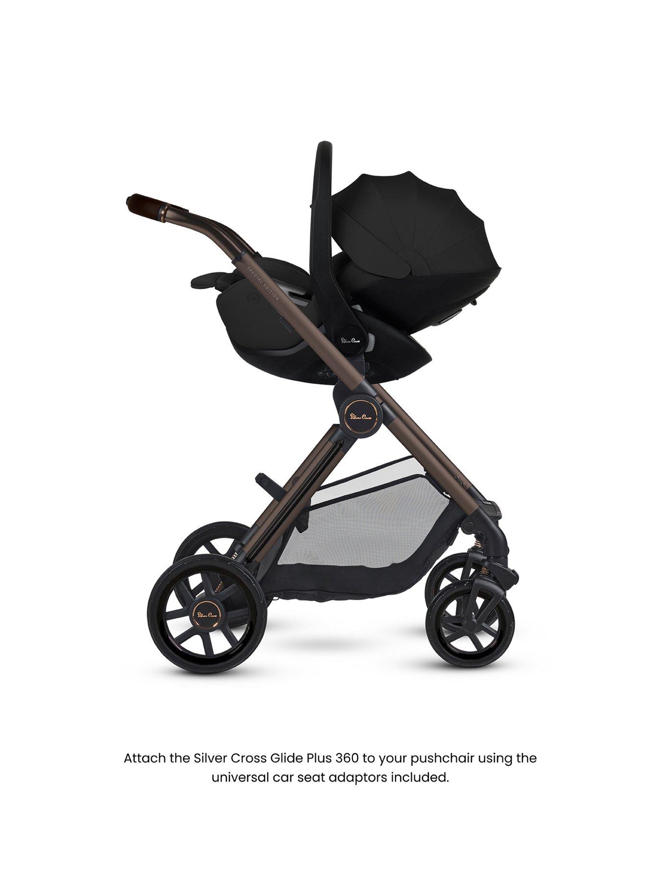 Silver Cross Reef 2 SE Ultimate 360 Car Seat Bundle - GanacheExperience Silver Cross Reef 2 Special Edition, where sumptuous style meets intelligent functionality. Included in the bundle Reef 2 Special Edition pushchair seat and chassis, foldable bamboo-lined carrycot, vegan leather changing backpack, footmuff, cup holder, phone holder, universal car seat adaptors and rain cover, Glide Plus 360 & Base Plus 360.Its butter-soft vegan leather handlebar and luxury jersey fabrics will stay pristine on every stroll thanks to its one-hand, self-standing fold. Reef 2 Special Edition can be effortlessly folded with the pushchair seat still attached in both parent and world-facing positions. Reef 2 Special Edition's premium overnight sleeping approved carrycot. Lined in the softest natural bamboo fabric with heat-regulating, hypoallergenic and antibacterial qualities, with a hard-shell ventilated base and mesh airflow panel. The lie-flat pushchair seat features an ergonomic curved head support and auto adjust harness with magnetic Genius buckle, which can be altered with one hand using the sliding mechanism at the back of the seat to adapt as your little one grows. Reef 2 Special Edition has everything you need: a luxurious backpack crafted from the softest vegan leather, which also doubles up as a stylish everyday, gym or travel bag, thermal footmuff to keep your little one warm during the colder months, phone holder and cup holder. Transform Reef 2 Special Edition into a convenient travel solution by attaching Glide Plus 360 to the chassis, Silver Cross' lie-flat infant carrier suitable from birth to 13kg (approx. 18 months). For added convenience the Glide Plus 360 can be secured onto the Base Plus 360 also included - a 360° rotating base with an AgeLock rotation switch and ISOFIX fitment