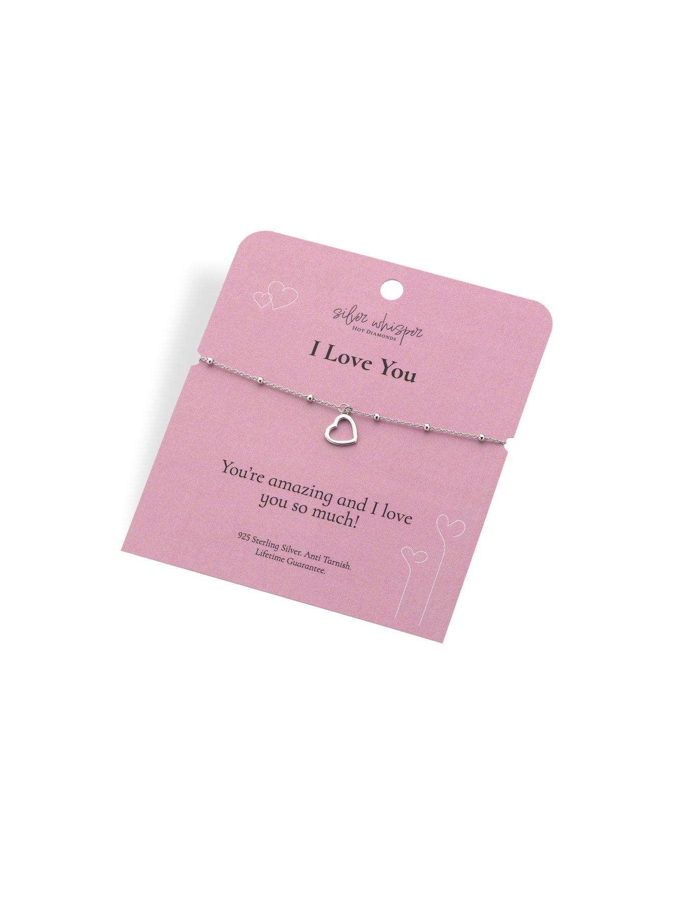 Silver Whisper Love BraceletSilver Whisper "I Love You" 925 Sterling Silver Bracelet with Heart charm.This bracelet measures 16cm with a 4cm extender. This bracelet does not contain diamonds. Rhodium plated for anti-tarnish and a lifetime guarantee. Presented on a coloured card and supplied with a luxury gift bag.