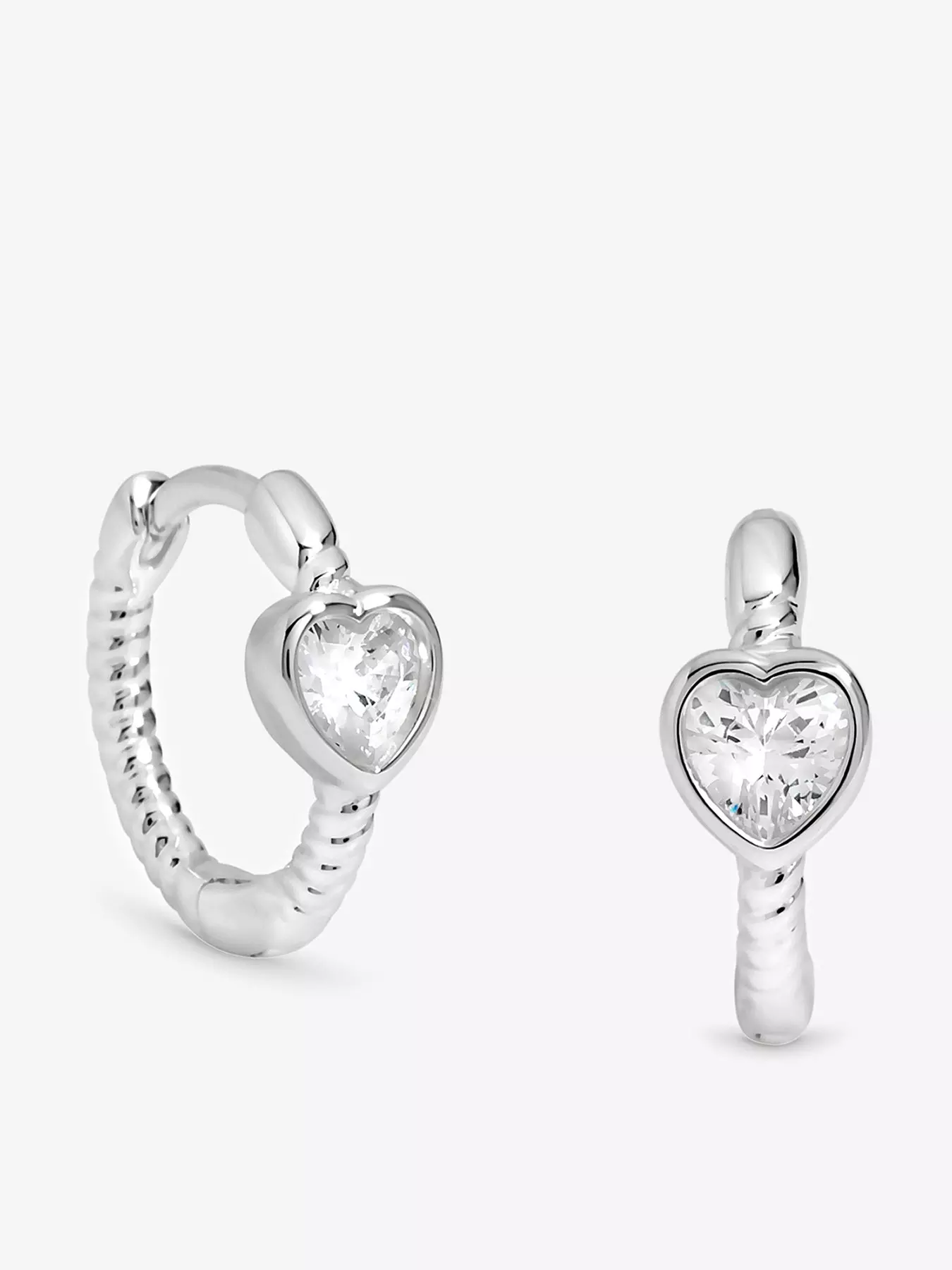 Simply SilverSimply Silver Sterling Silver 925 Polished Cubic Zirconia Centre Heart Hoop Earrings