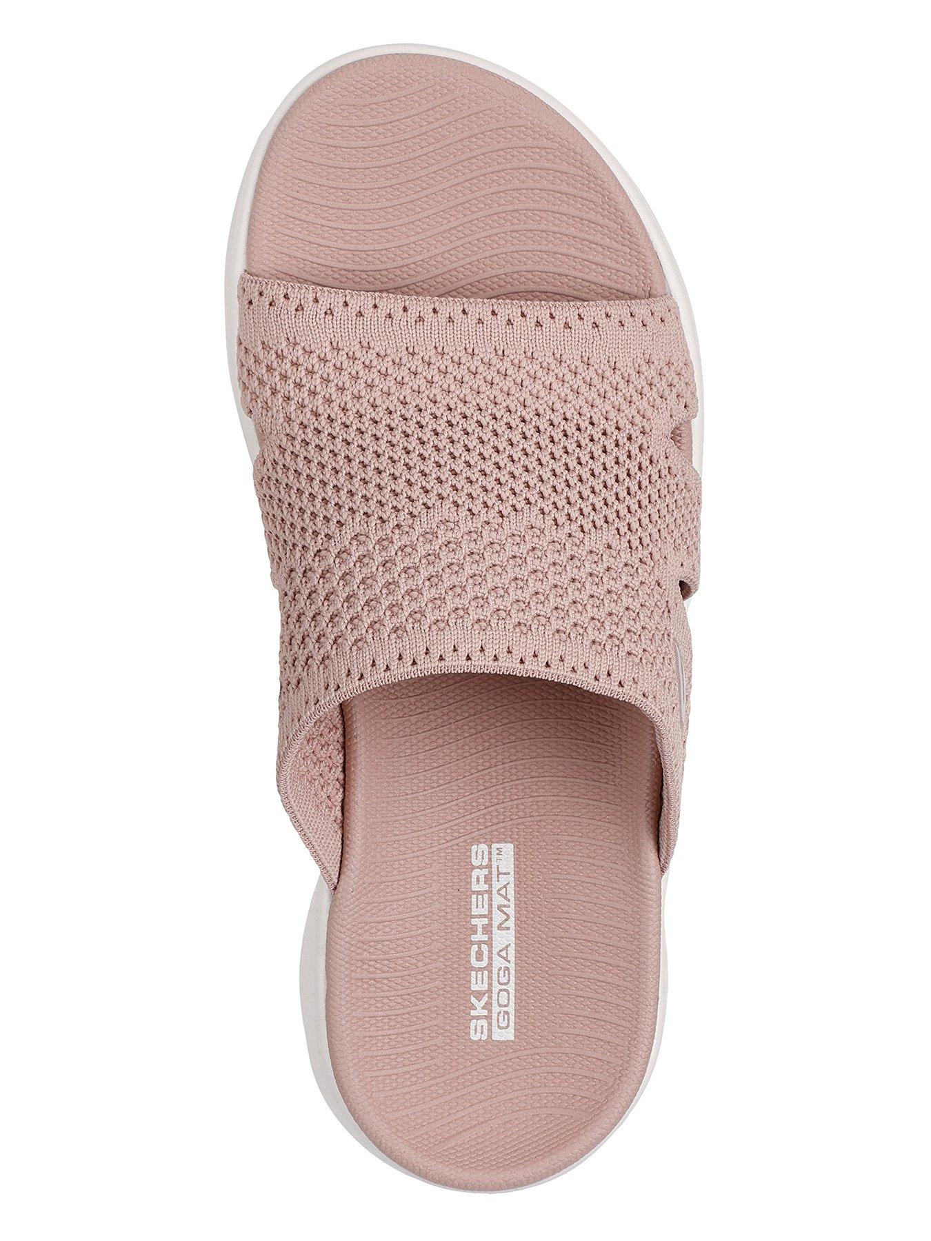 Skechers Go Walk Flex Textured Knit Sandal - PinkChoose the easy life in laid back style wearing Skechers GO WALK Flex Sandal - Elation. This casual comfort slide features a textured knit upper with a contoured Goga Mat footbed and lightweight ULTRA GO cushioning.
