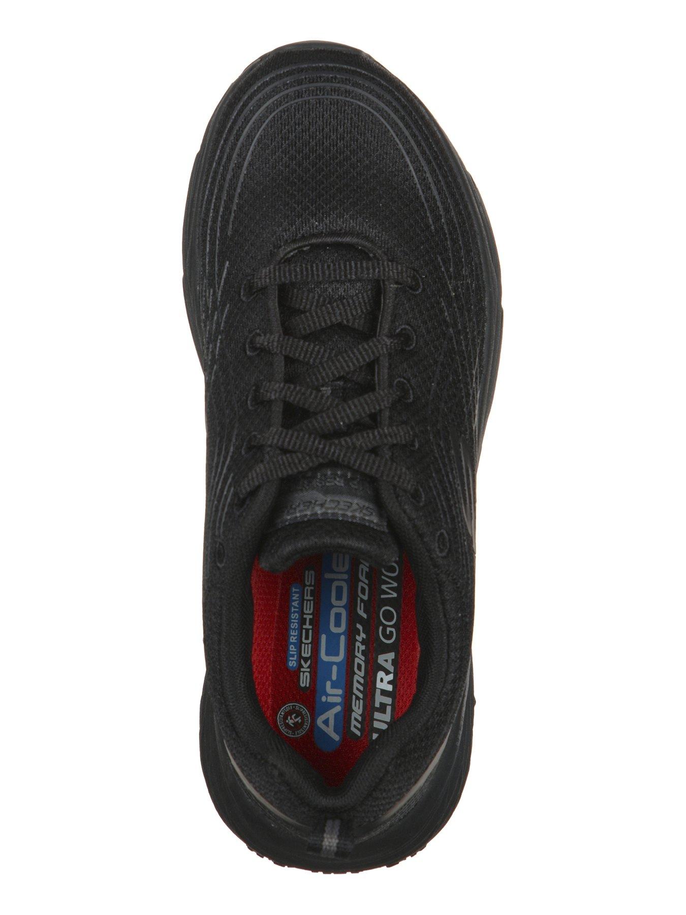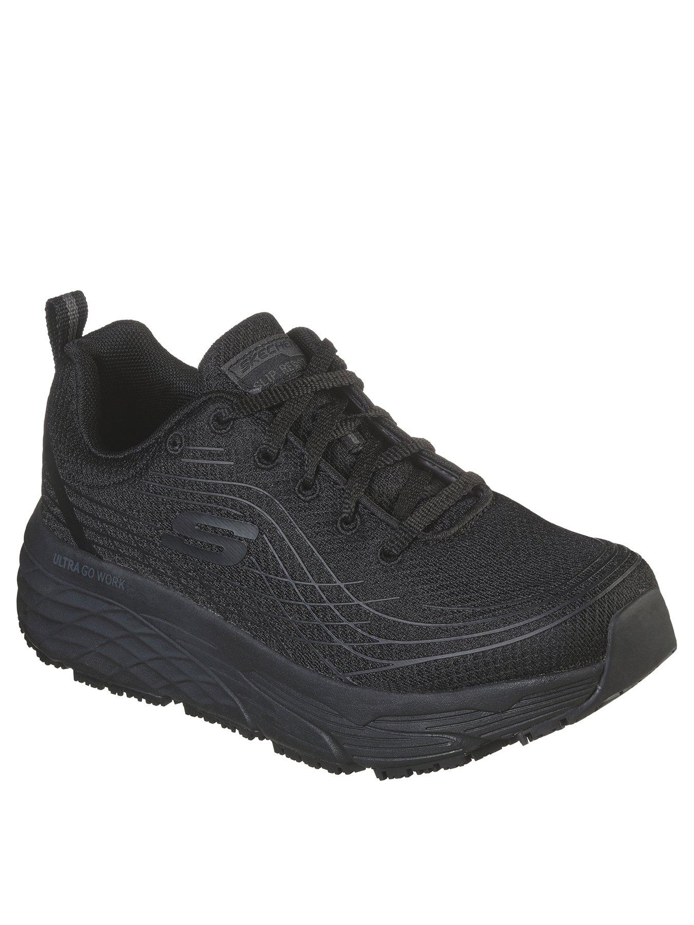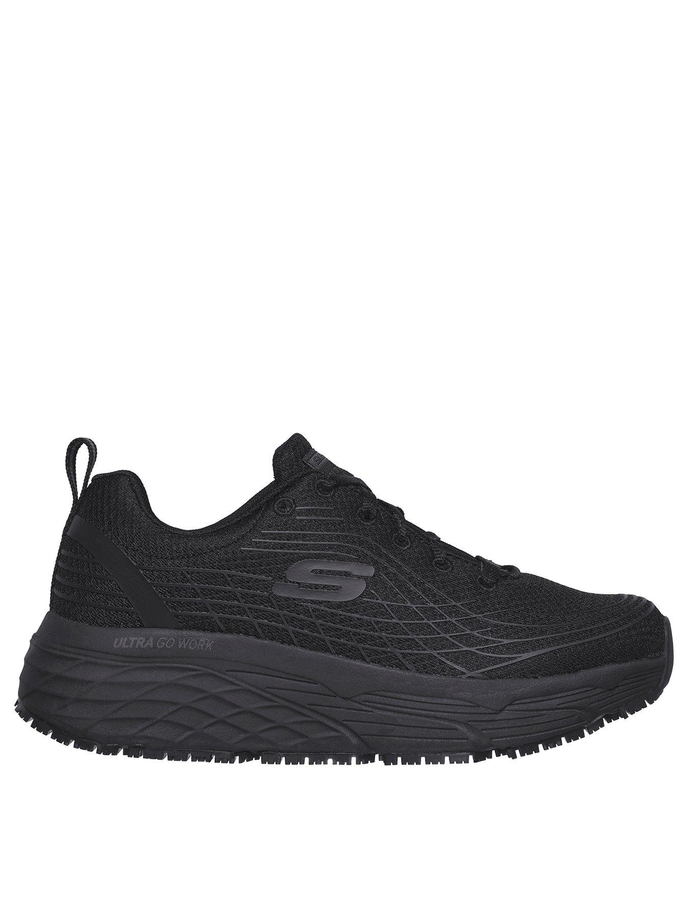 Skechers Haptic Printed Workwear Slip Resistant Trainer - BlackExperience maximum comfort with the safety you can depend on in Skechers Work™ Slip-Resistant Relaxed Fit®: Max Cushioning Elite™. This slip-resistant work lace-up features a roomy mesh and synthetic upper with a Skechers Air-Cooled Memory Foam® insole.
