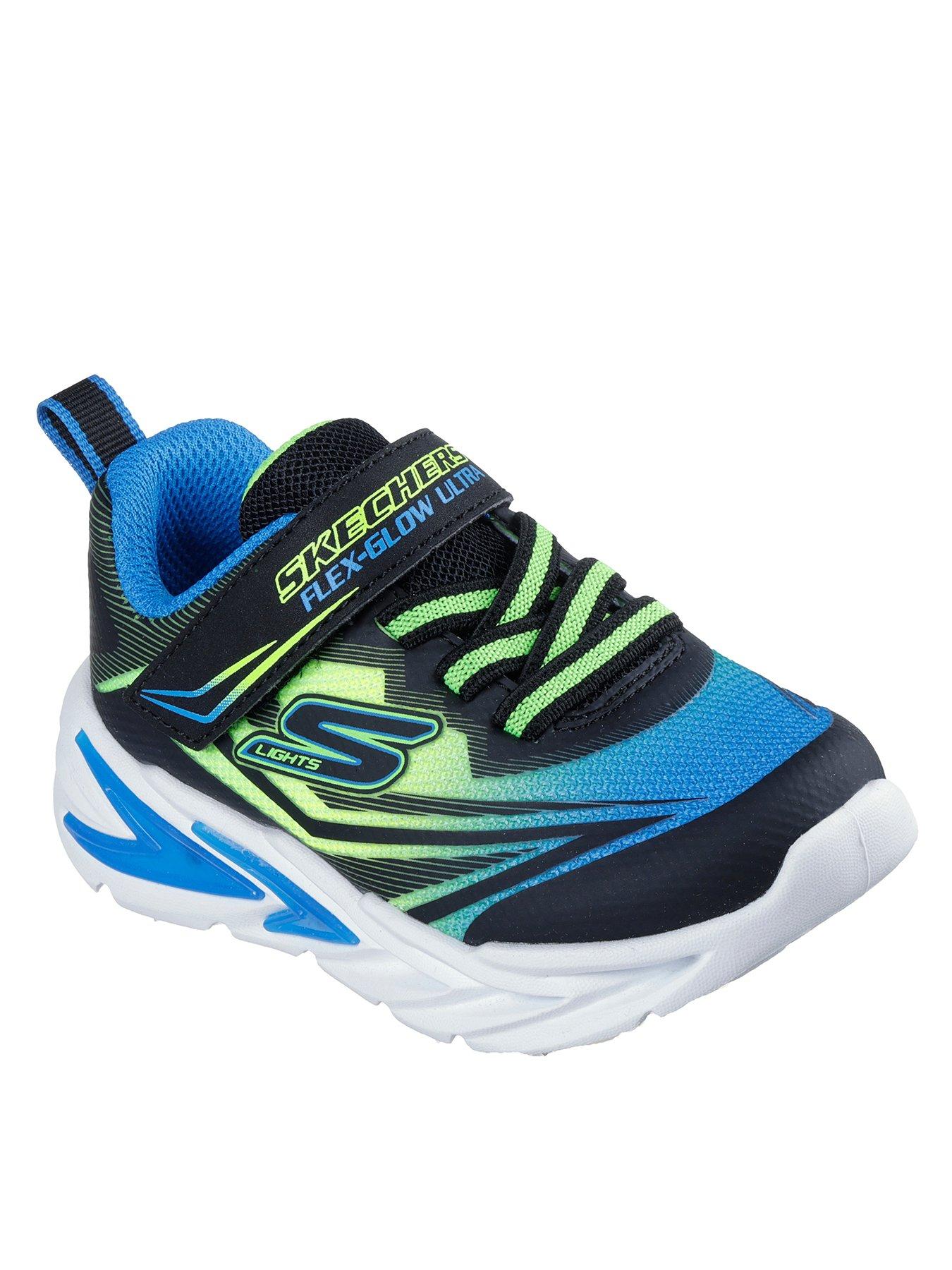 Skechers Kids Lighted Gore & Strap Sneaker W/ Midsole TechpieceRev up their day with the bright fun of Skechers S-Lights: Flex-Glow Ultra. This colorful sneaker features an ombre mesh upper with synthetic overlays, fixed stretch laces and Adaptive Closure, plus a tech-pieced light-up midsole.
