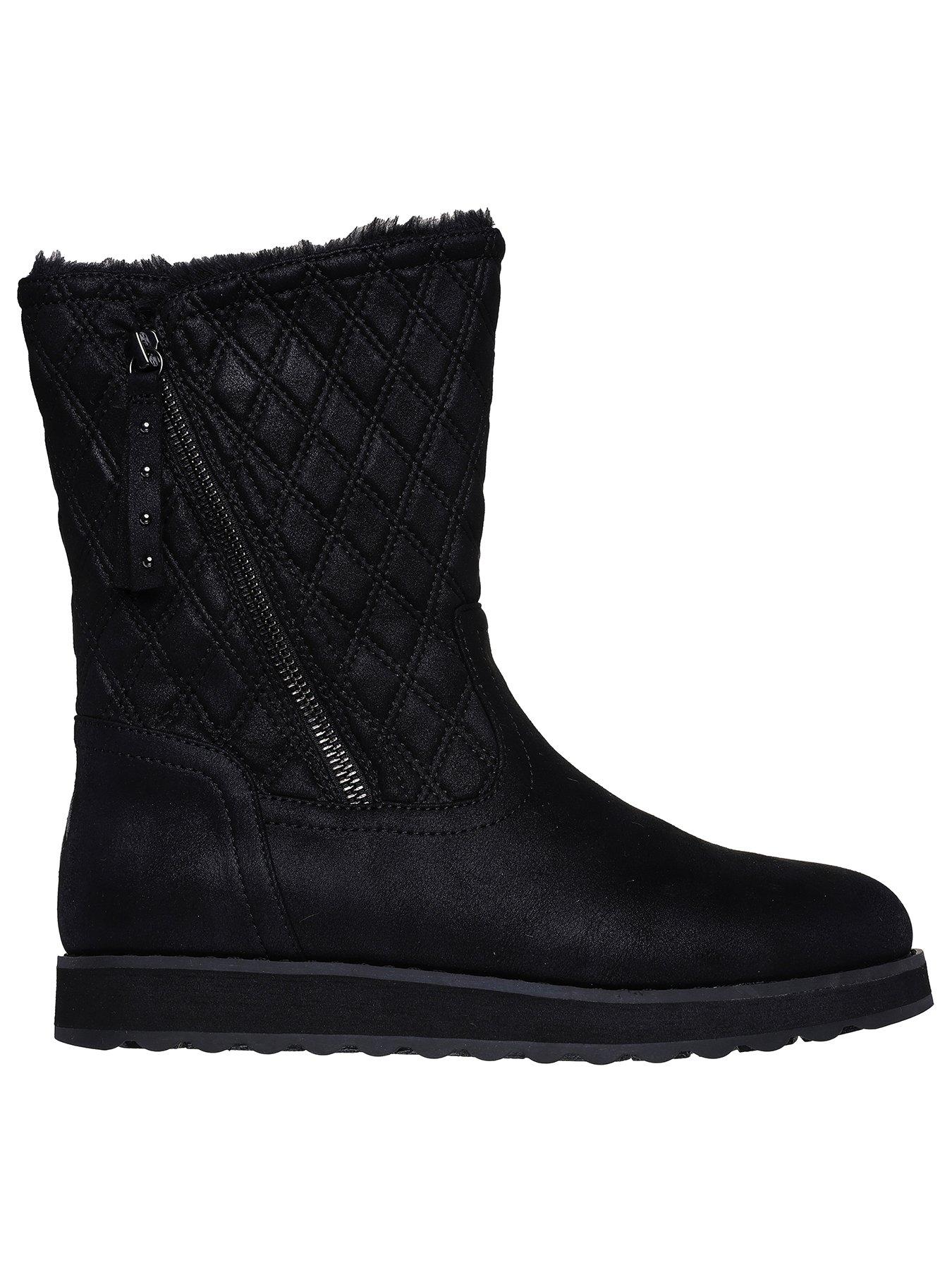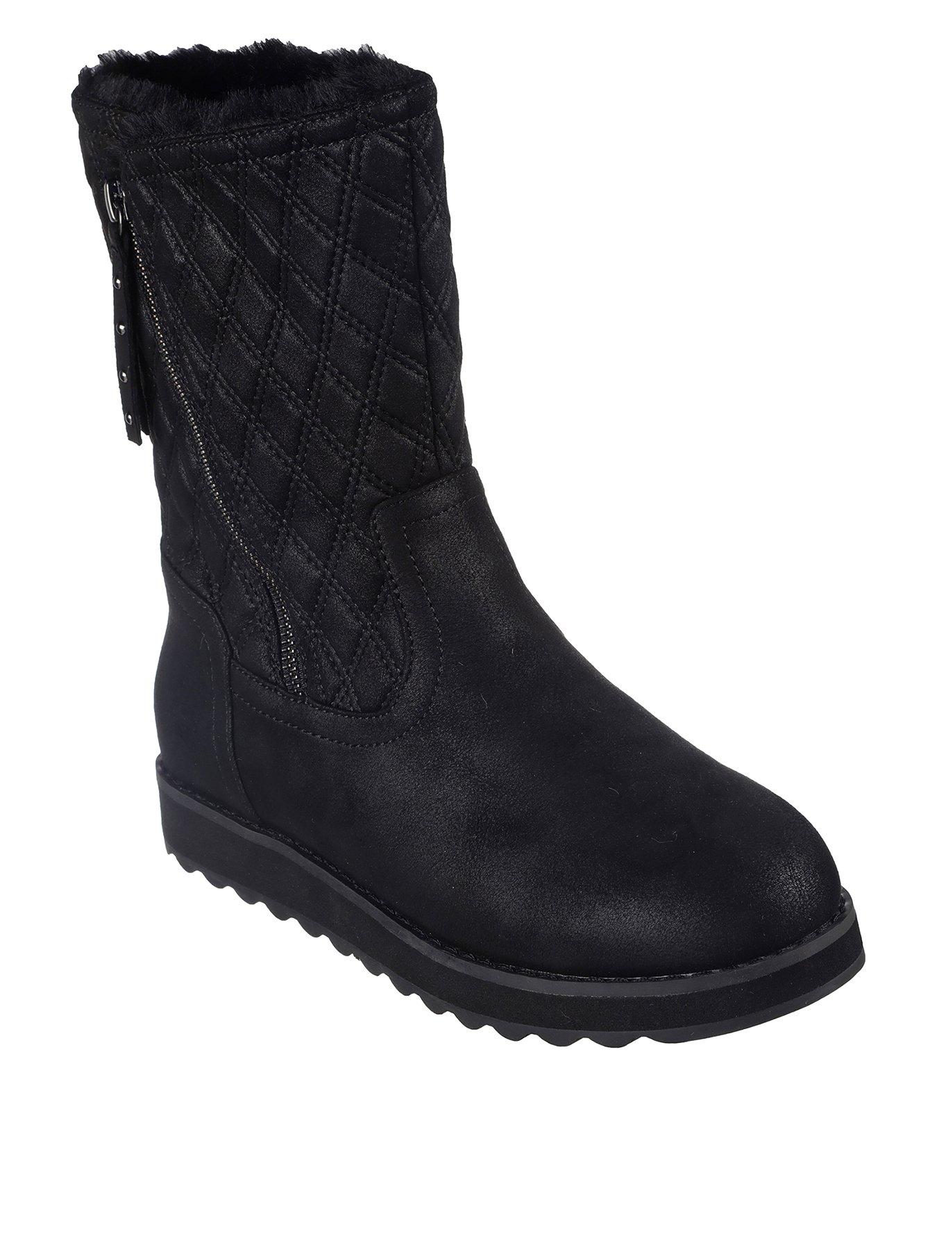 Skechers Keepsakes 2.0 Quilted Side Zip Boot - Black Microleather/faux FurKeep warm and stylish in Skechers Keepsakes 2.0. This zip boot features a microleather upper, Faux Fur lining, 3M Scotchgard, Vegan and Warm Tech Memory Foam.