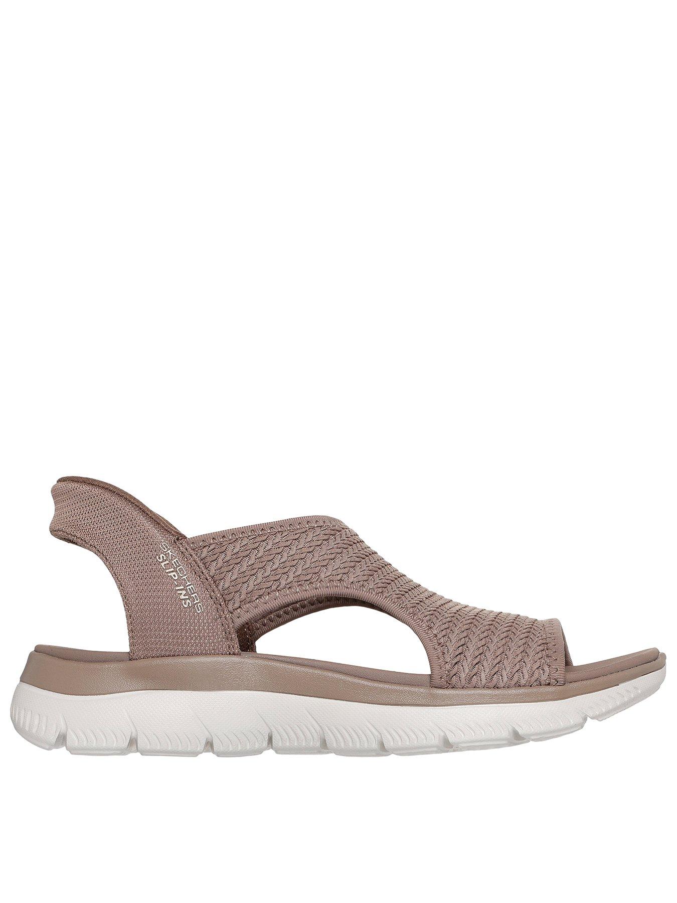 Skechers Wide Fit Summits Sweetly Evolved Sandal - MoccaEnjoy sunny days in breezy comfort with Skechers Hands Free Slip-ins: Summits - Sweetly Evolved. Designed with our Skechers Hands Free Slip-ins back heel, this slingback sandal features a knitted strap upper with a cushioned Yoga Foam footbed.