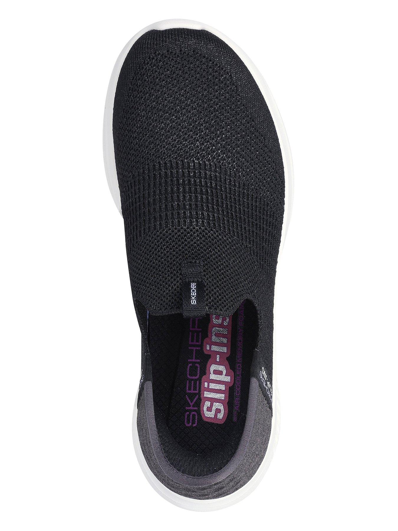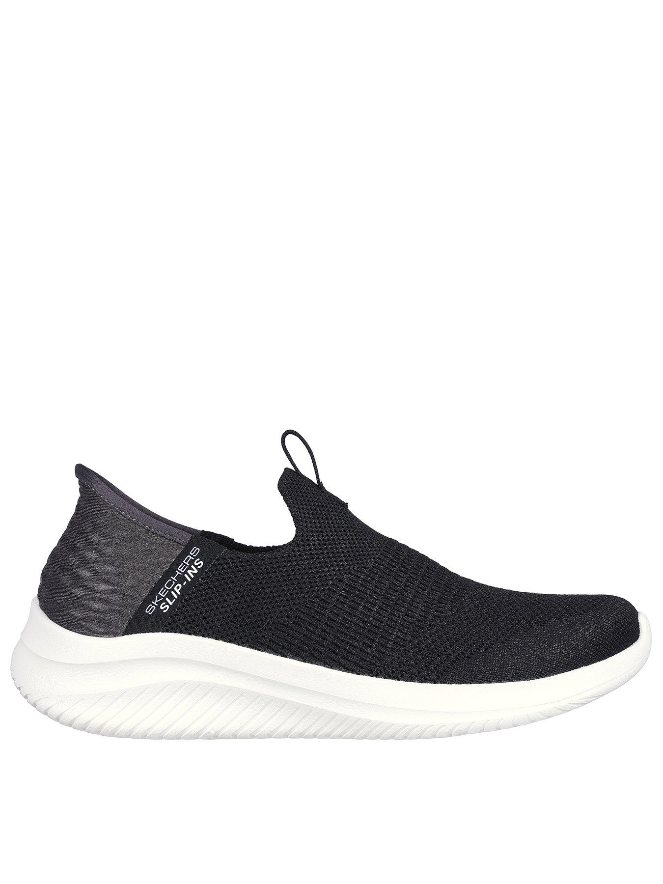 Skechers Wide Fit Ultra Flex 3.0 Trainer - BlackStep into effortless style and comfort with Skechers Hands Free Slip-ins: Ultra Flex 3.0 - Smooth Step. Designed with our exclusive Heel Pillow, this TOUCHLESS FIT vegan style features a Stretch Fit engineered knit upper with jersey trim, plus a cushioned Skechers Air-Cooled Memory Foam insole.