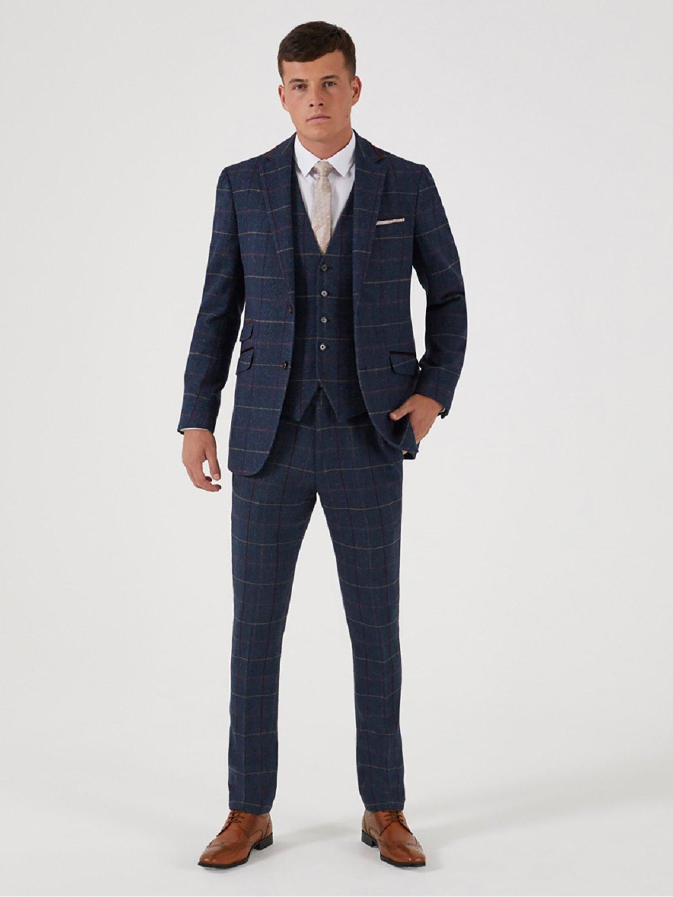 Skopes Doyle Check Tailored Suit Trousers - Dark BlueSize & Fit