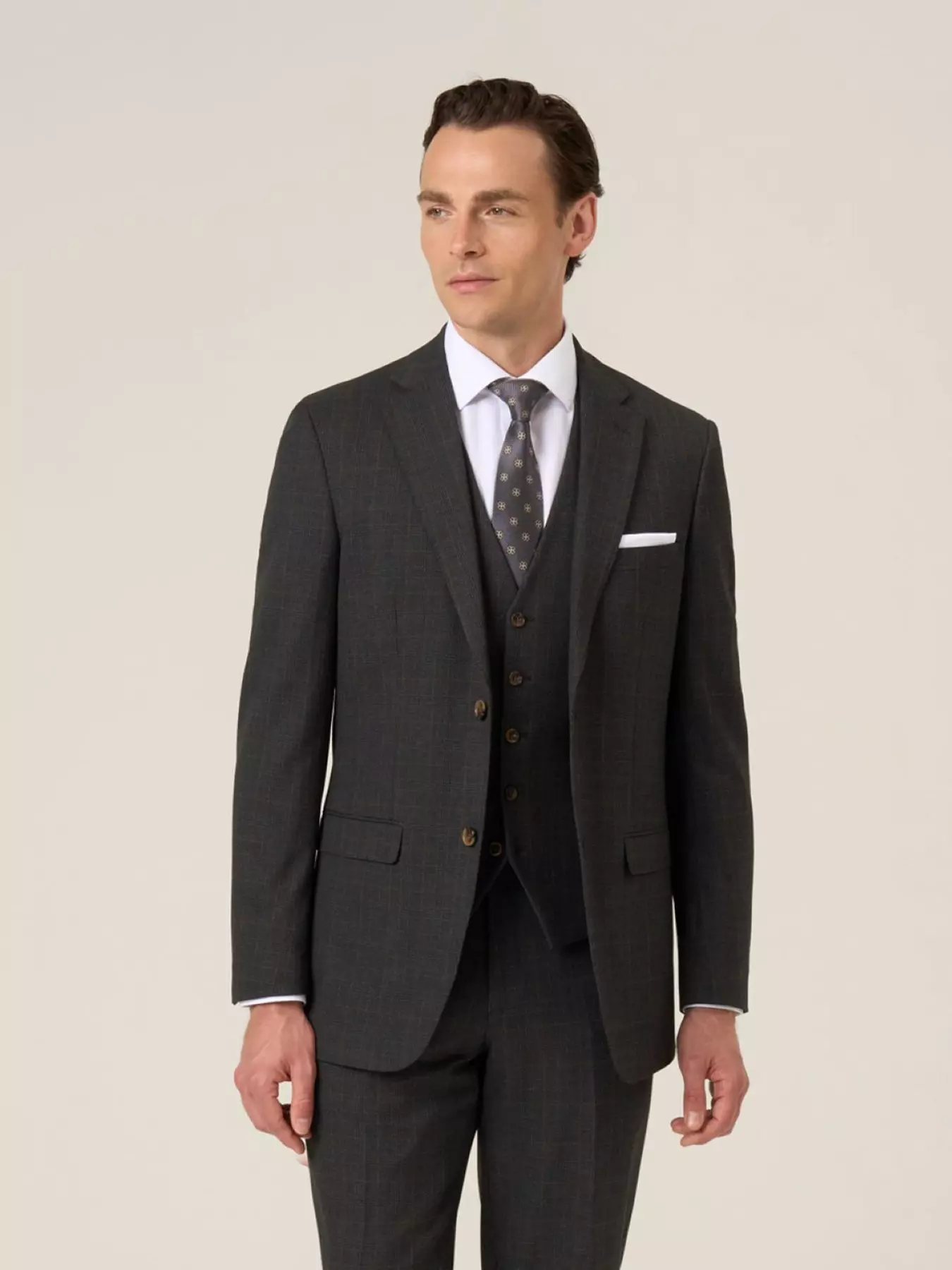 SkopesTailored Fit Charcoal Check Elijah Suit Jacket - Dark Grey