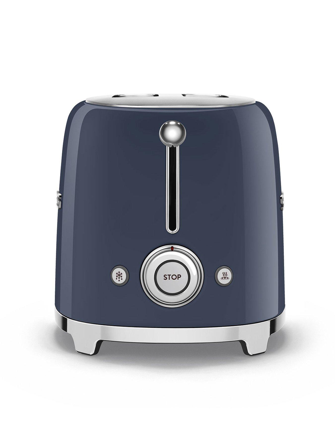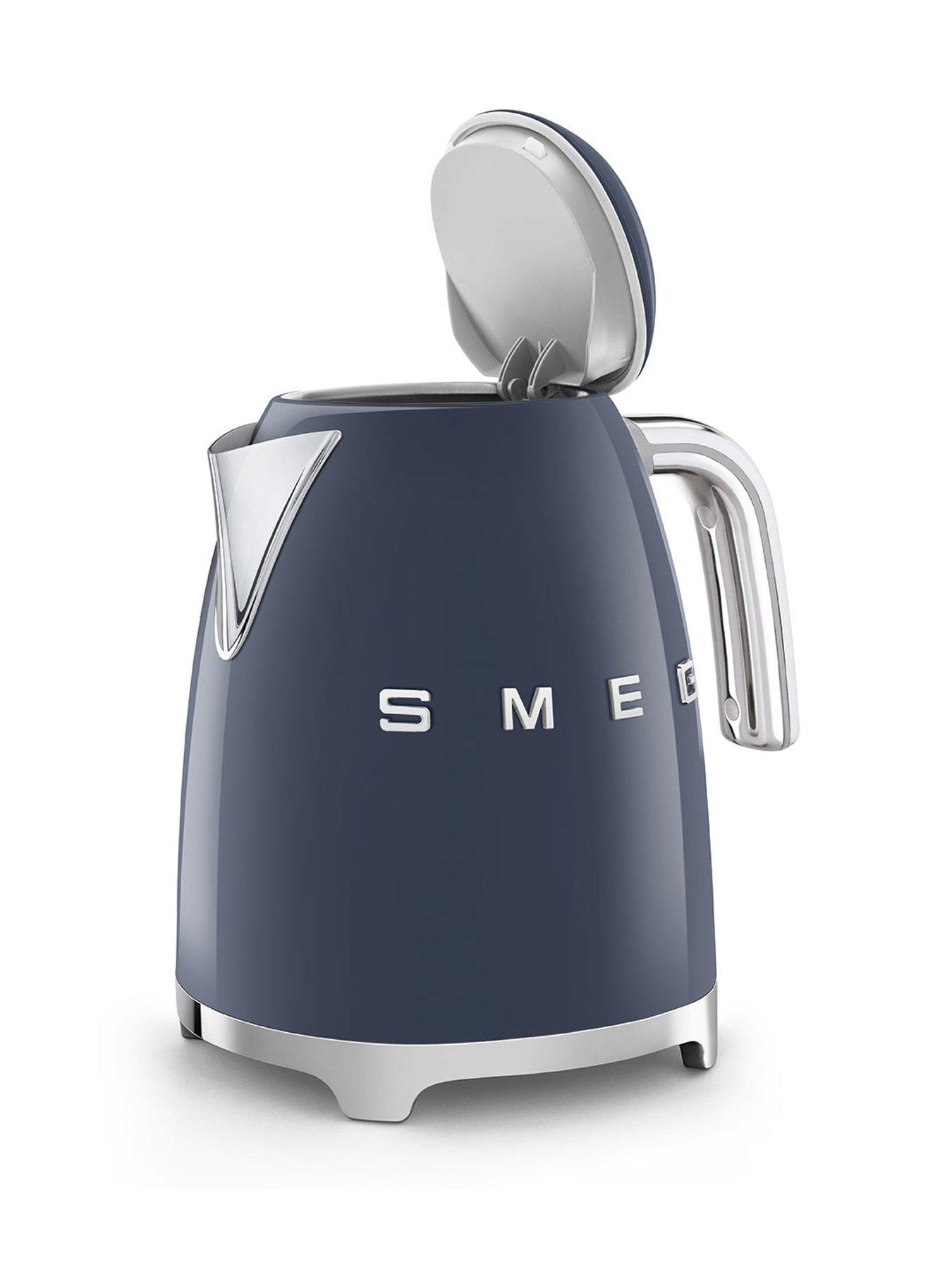 Smeg Smeg Kettle and 2 Slice Toaster, NavyEEJB386= KLF03NBUK + TSF01NBUK Kettle and 2 Slice Toaster- Navy.Smeg's KLF03 kettle features the signature 50's retro design and impressive performance. This kettle brings a touch of vintage glamour to your countertop without compromising the modern features. Whether you're preparing breakfast before the school run or a luxurious treat for breakfast in bed, the Smeg TSF01 two-slot toaster has got it covered. This two-slice toaster is perfect for those who like to make a statement in the kitchen but can also handle warming pastries, bagels, and toasting treats! - KEEP WARM OPTION: The keep warm function enables water to maintained at the selected temperature up to 20 minutes - 7 TEMPERATURE LEVELS: Different blends of tea require different temperatures. Smeg's KLF04 variable temperature kettle allows you to choose from a number of temperature settings between 50°C to 100°C to customise the water temperature - LARGE COMPARTMENTS: self-centering racks in the compartments ensure even toasting of slices of bread, whatever size they may be - AUTOMATIC: when the selected toasting time has finished, the slices pop up automatically, there is also a removable and washable crumb tray for easy maintenance - SMEG GUARANTEE: This product comes with a 2 year guarantee when you register for free with SMEG where you'll be able to return the appliance to be repaired or replaced if faulty